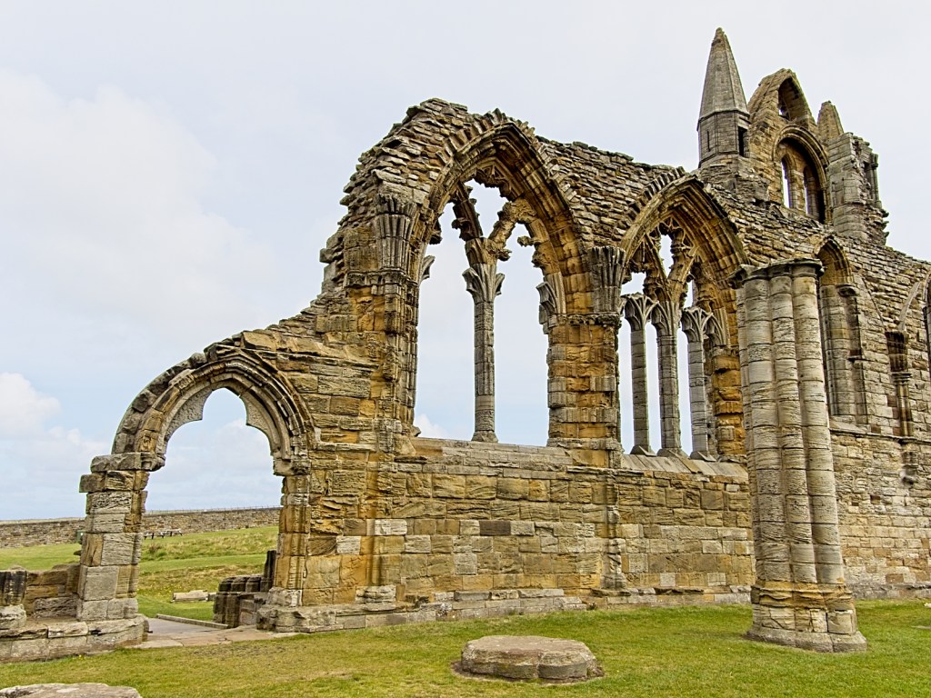 The abbey has a very long history. Saint Hild founded Whitby Abbey in the 7th century, but it was abandoned as a result of Viking raids. It was reopened by the Benedictines in the 11th century. They built of stone, but that was eventually replaced by a church, the remains of which you can now see, built in the 13th to 15th centuries. The church was reduced to ruin in the reformation.