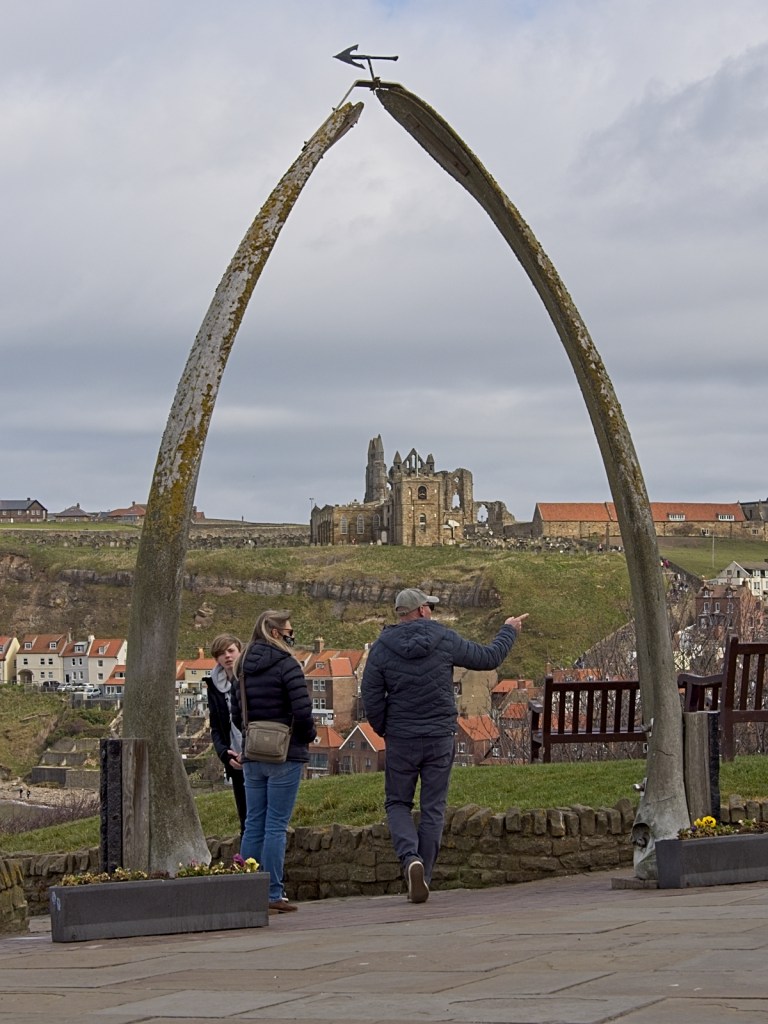 Probably the most photographed view of Whitby and the Abbey, taken from the North side of the harbour, using the two whale jaw bones to frame it.