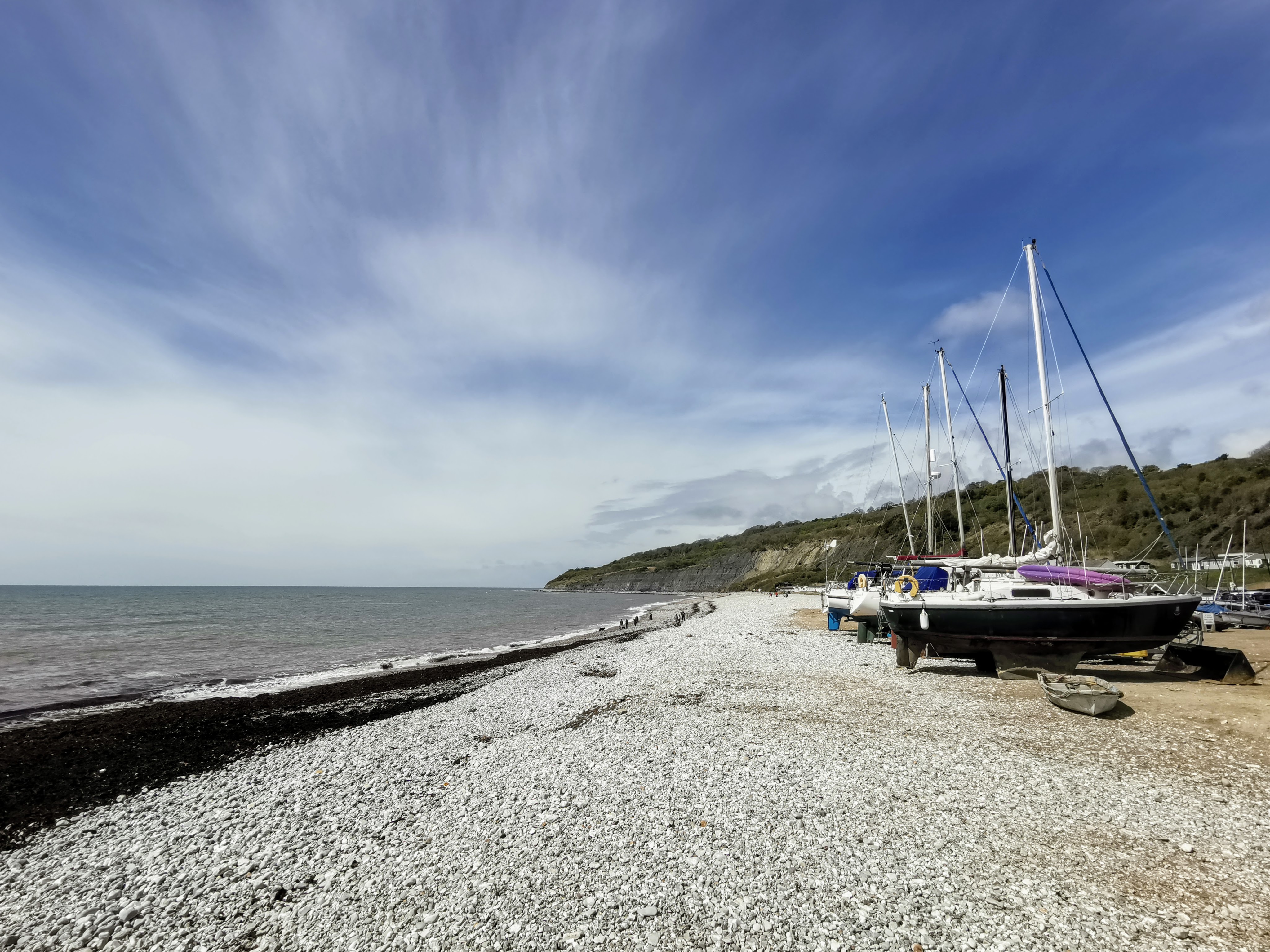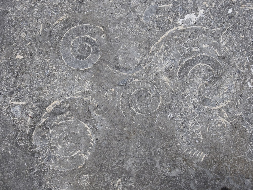 Out to the west of the town, the shingle beach resumed. We walked along and found more ammonite fossils.
