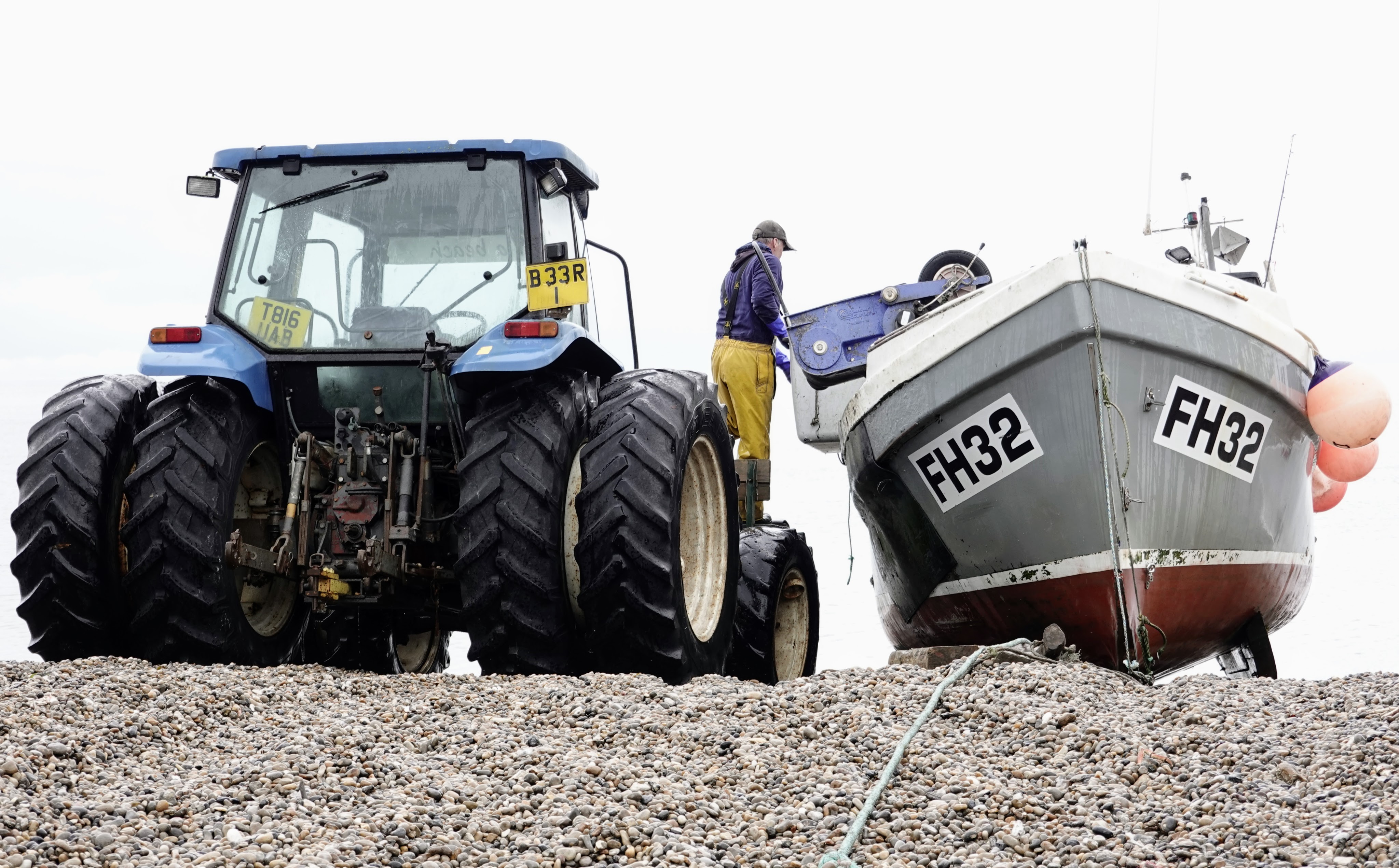 The historical economic activity of the village is fishing and there were several fishing boats hauled onto the beach.
