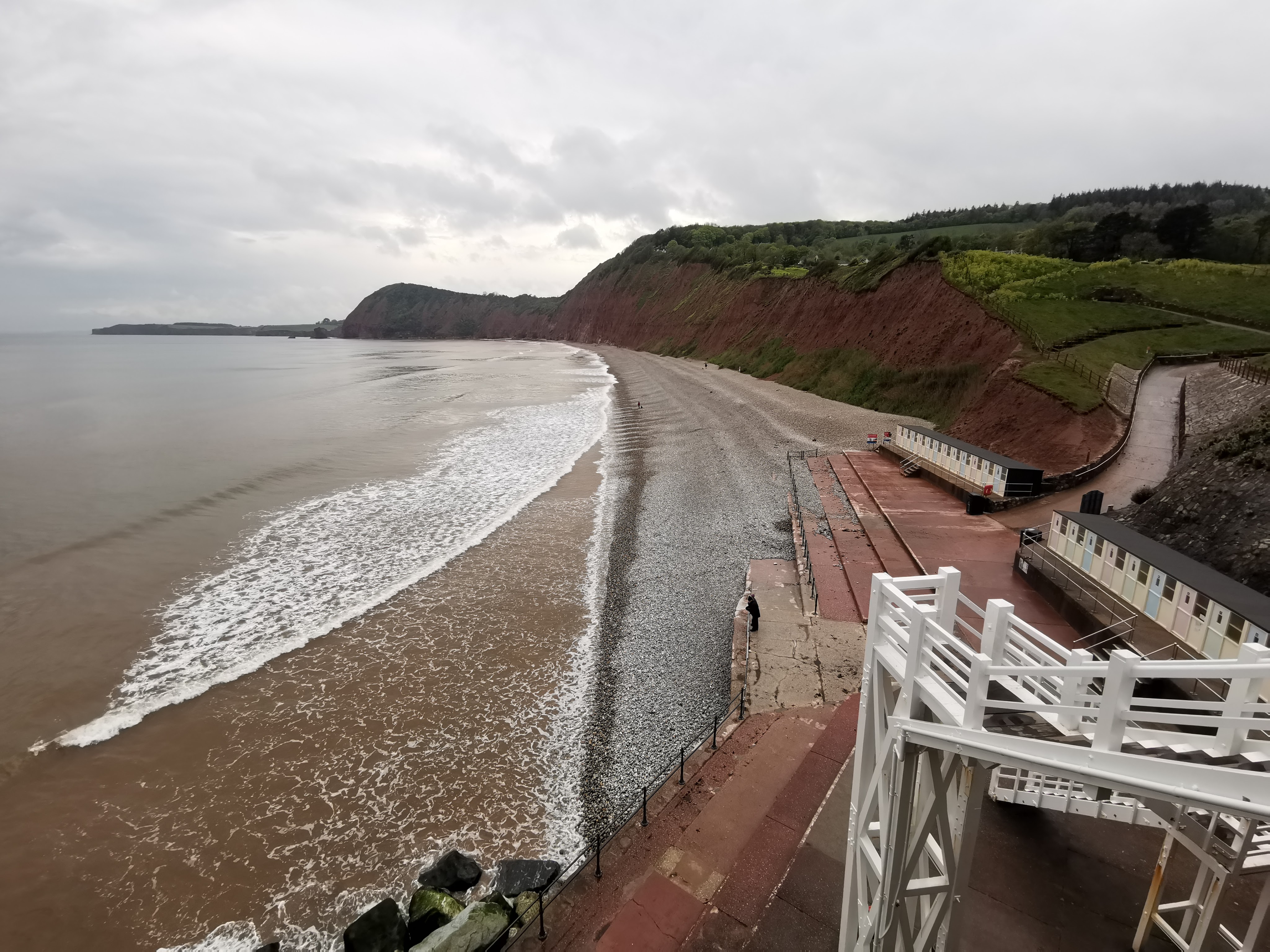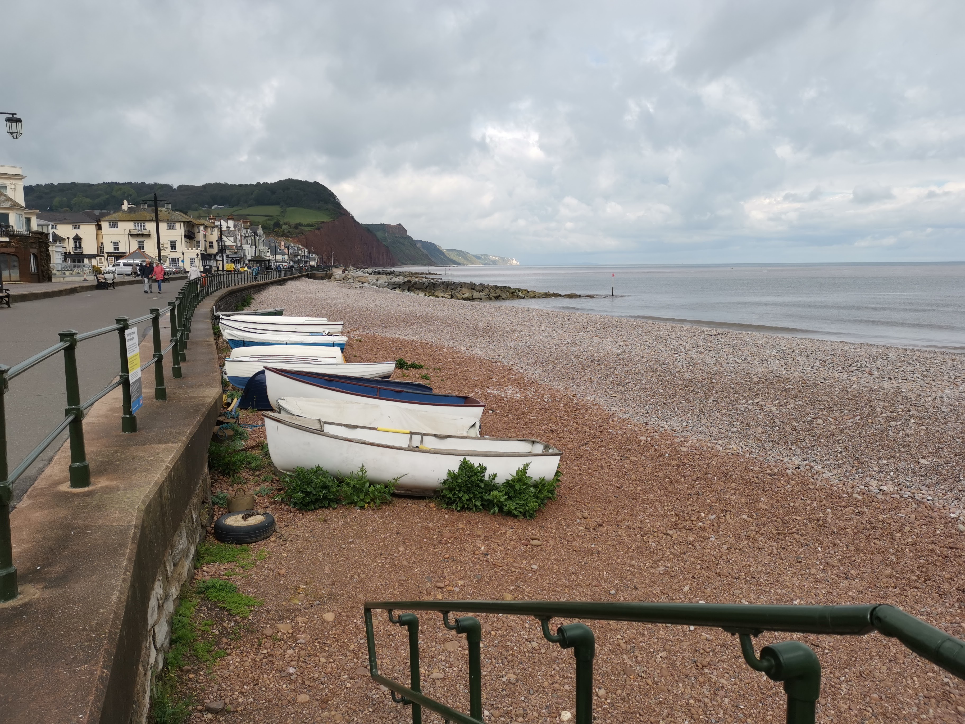 We spent the afternoon in Sidmouth, another beautiful seaside town with high cliffs and a nice beach. We had parked to the west of the town, near to Connaught Gardens, which were interesting. They overlook the sea and the coastline further to the west. From the gardens, you can descend a wooden staircase to the pathway along the top of the sea defences, which run along the base of the cliffs into the town.