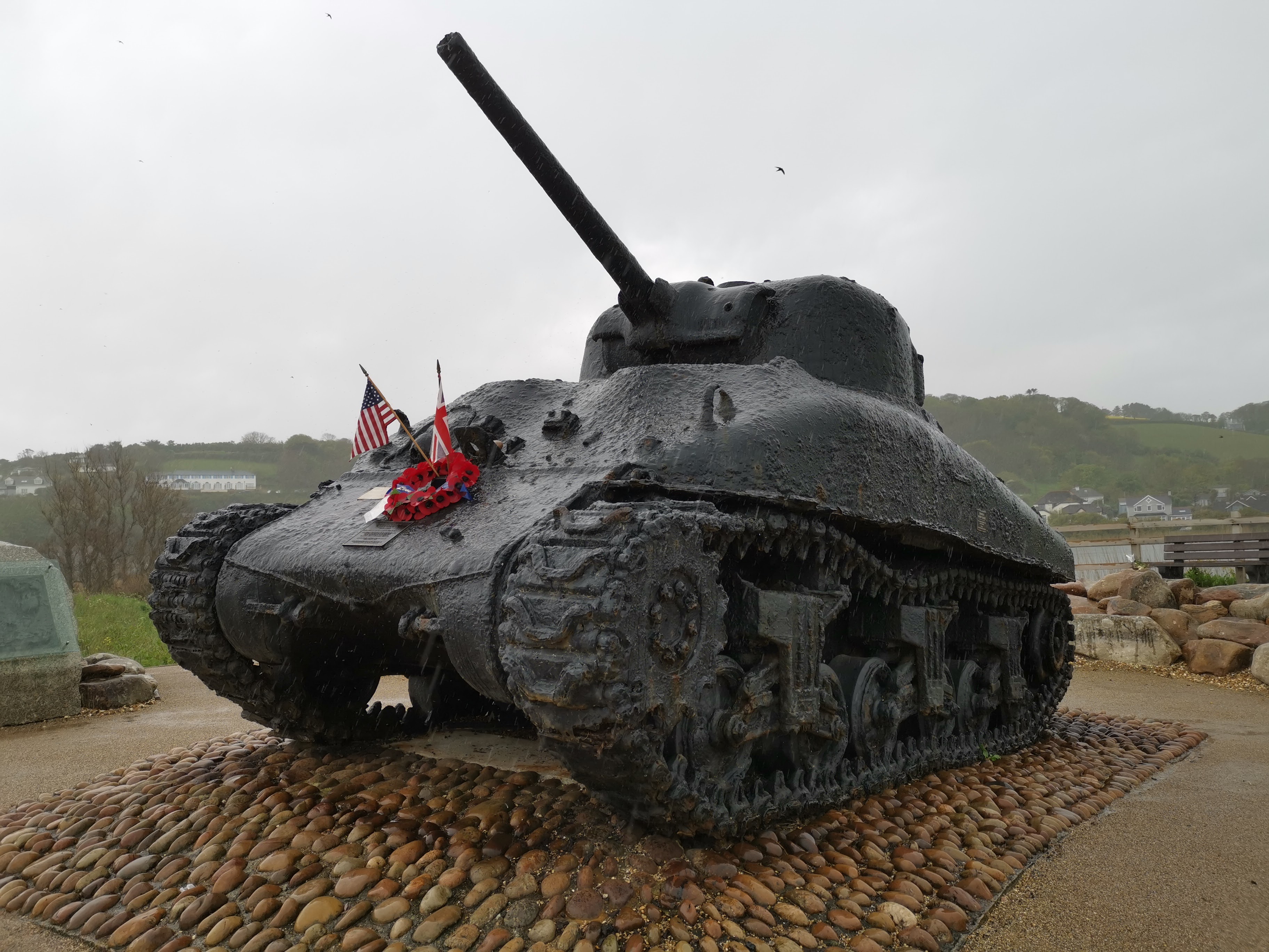 At the end of the carpark, behind the Start Bay Inn pub, there is an American Sherman Tank which was recovered from the sea. The tank commemorates the dreadful American loss of life in a tragic rehearsal for the D-day landings.