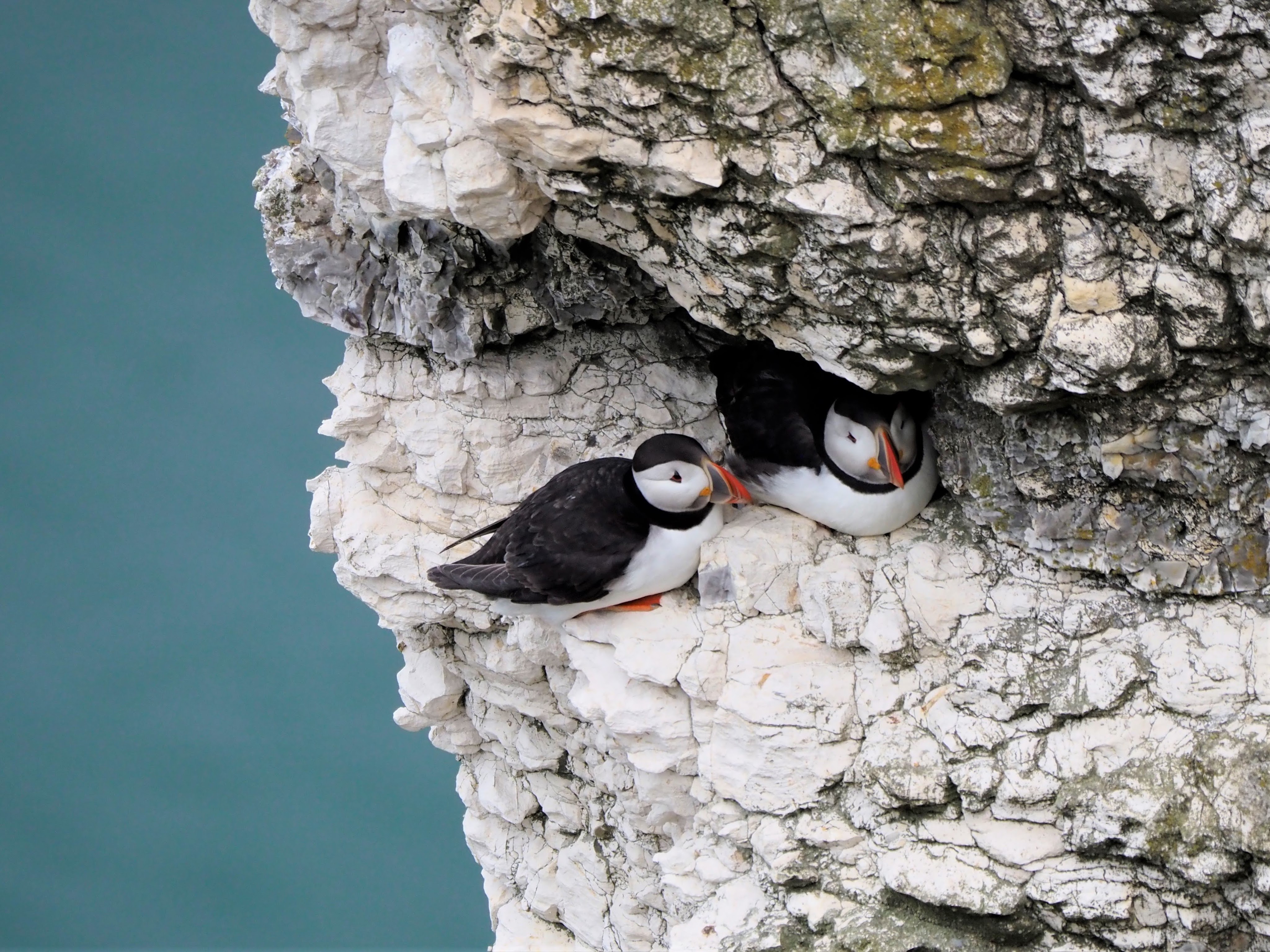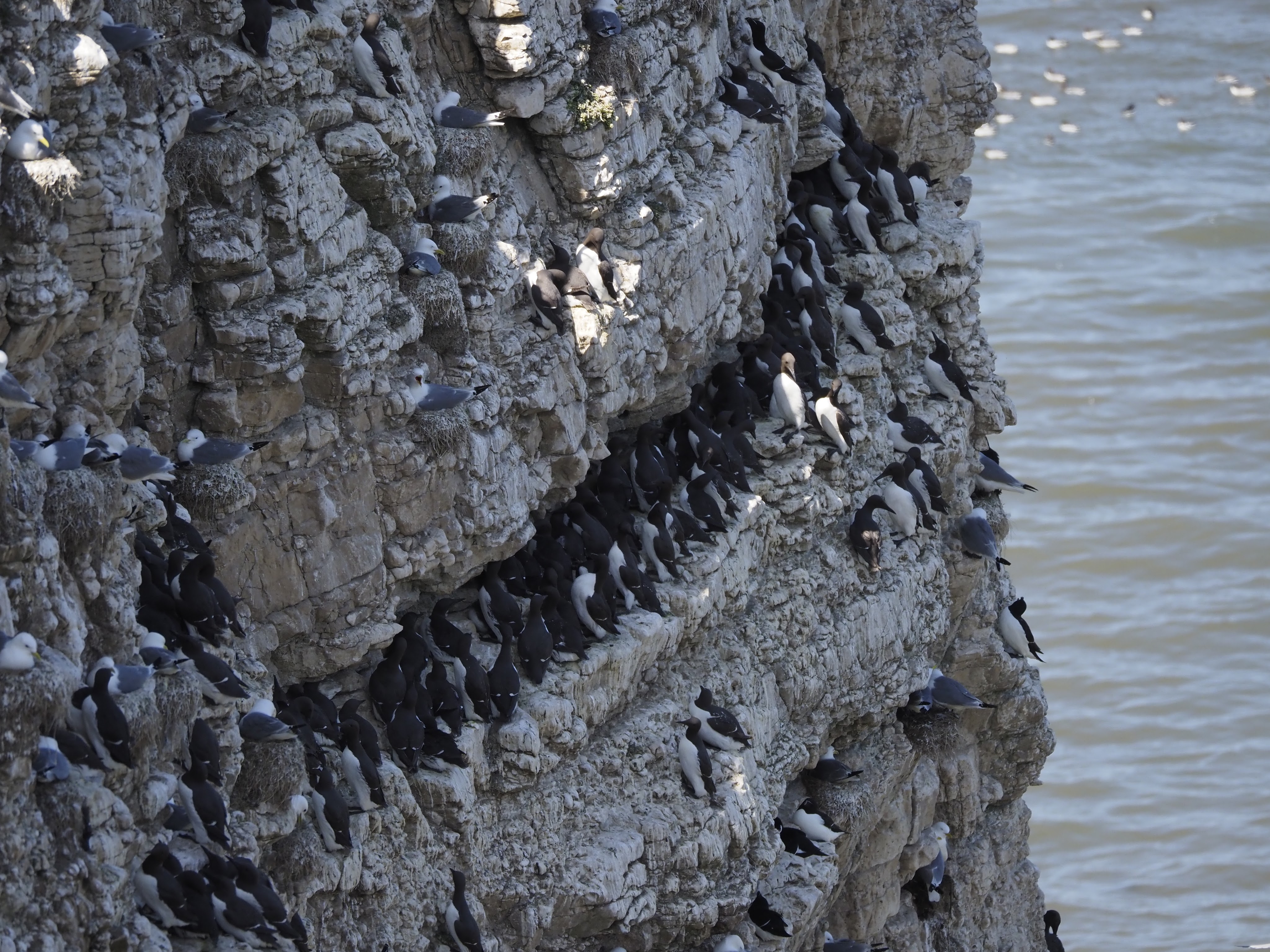 We spent the following day, Friday, in the RSPB reserve which is north of the site, watching all the various seabirds nesting on the cliff-face. It never ceases to amaze me that they manage to raise their young under these circumstances. The limestone cliffs are full of ledges and fissures, providing niches for the different species to exploit.