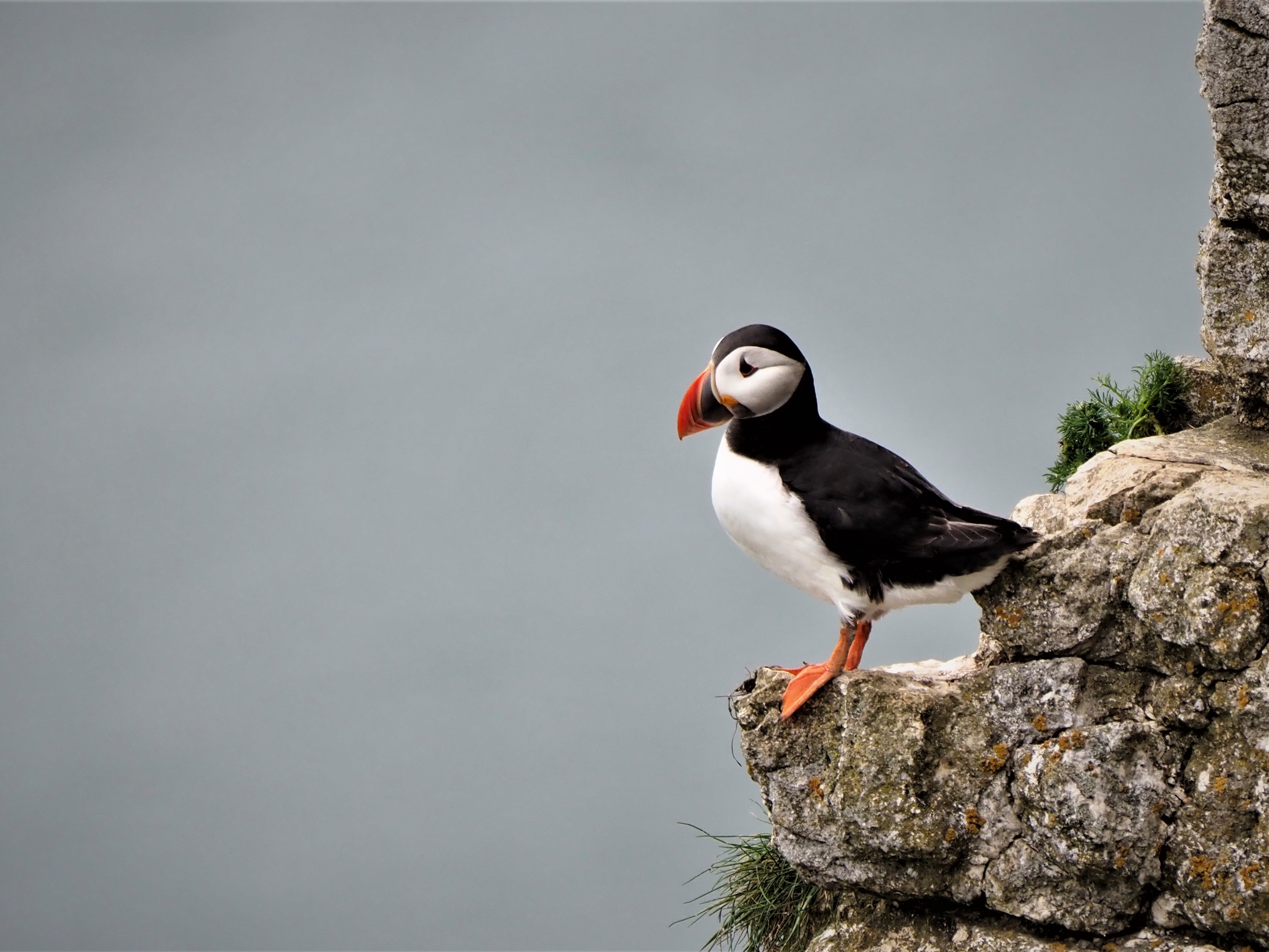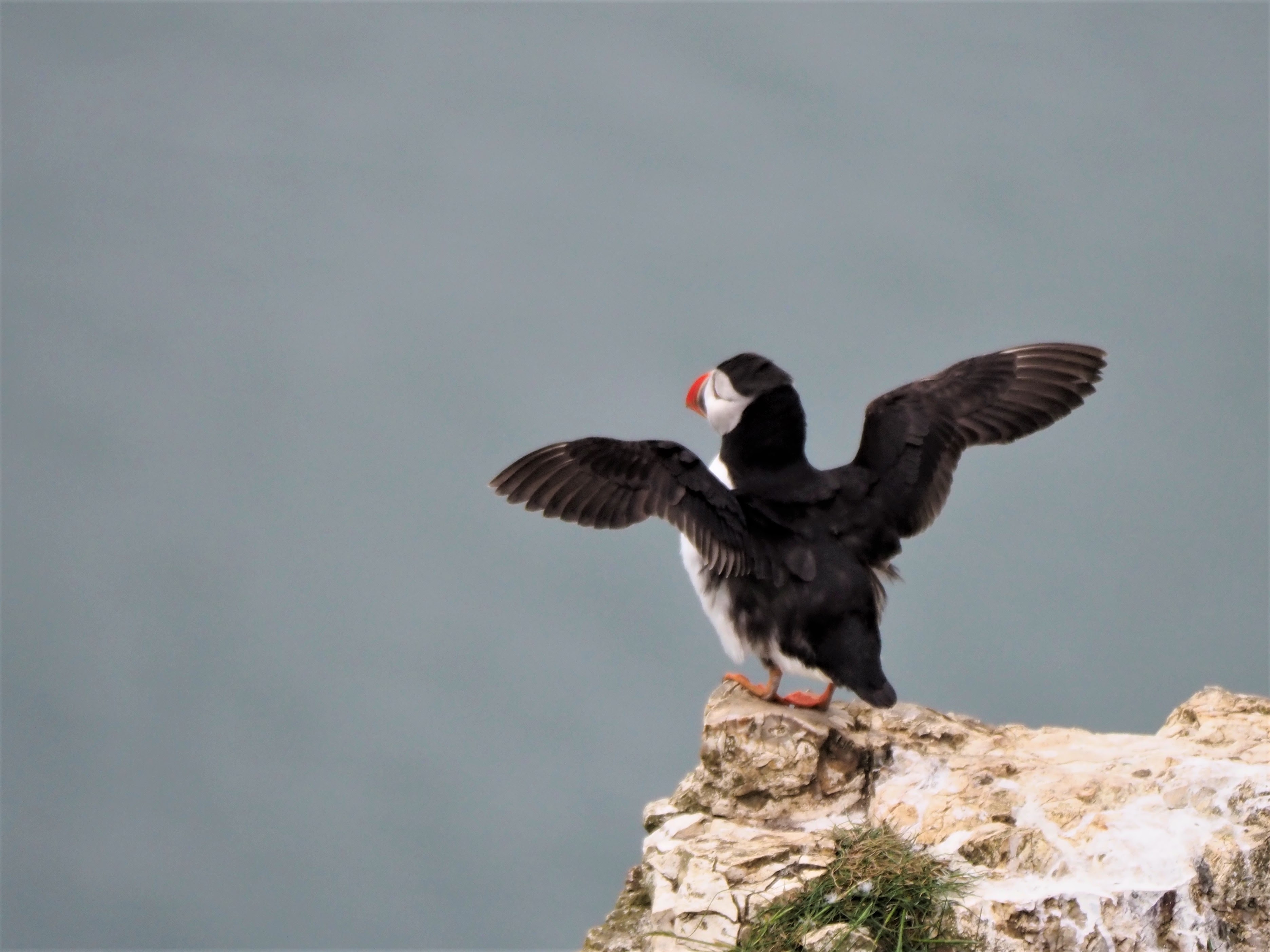 Jeeves’s craving to see puffins was met on the evening of our arrival when we walked to the south along the cliff-top path from the site. He was able to see them, but had not brought his camera, so tried to manage with his phone, with limited success.