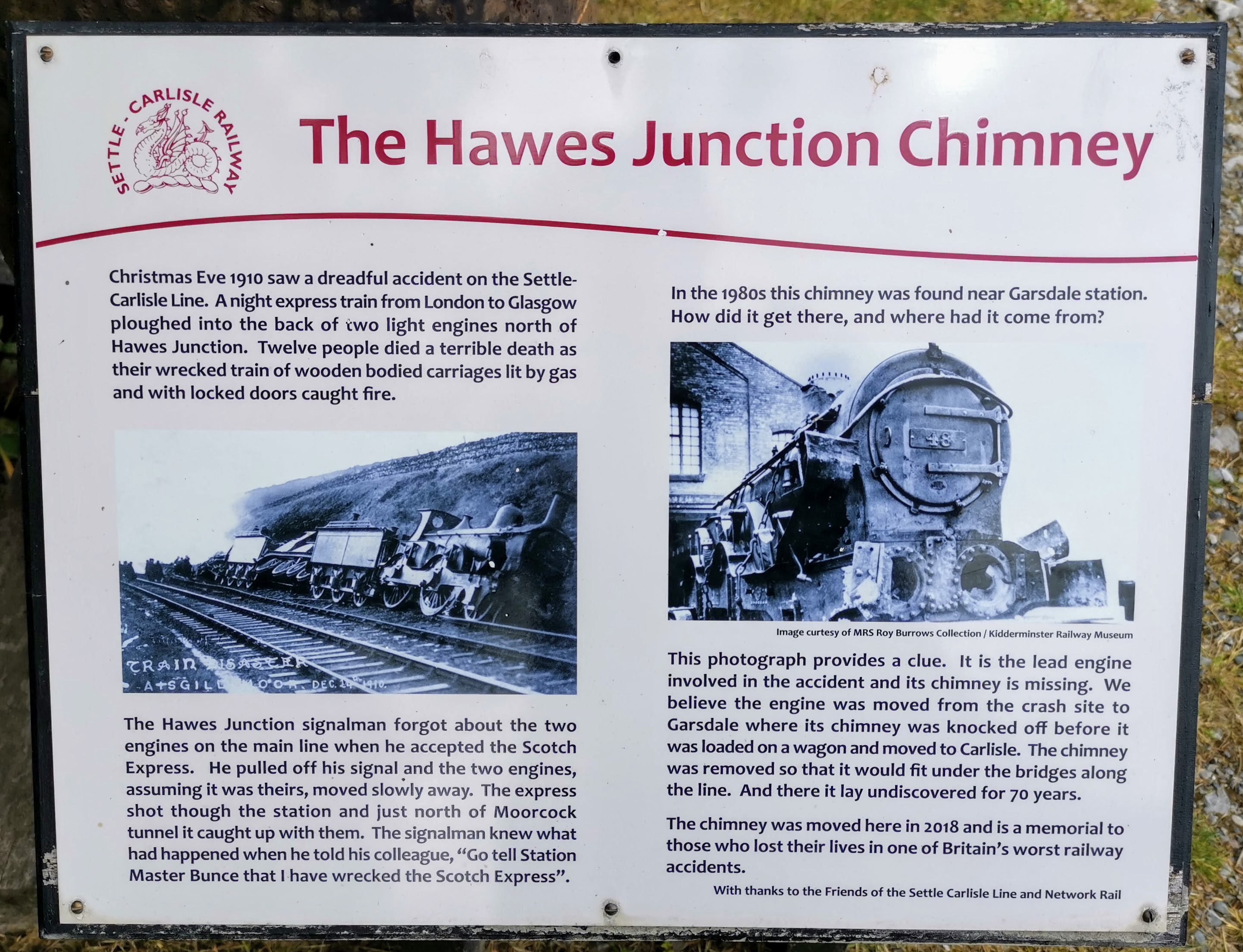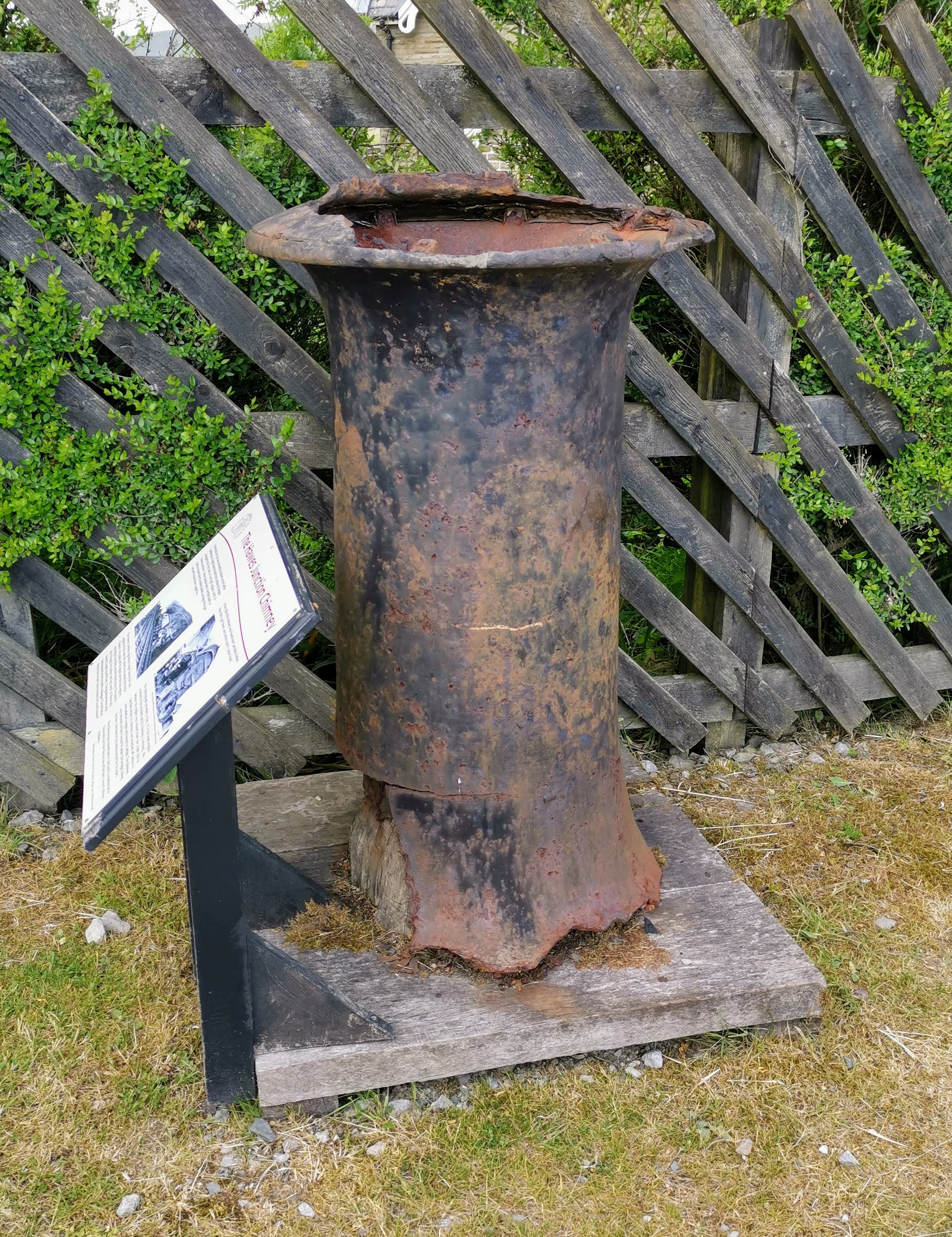 Outside the station, there is a locomotive chimney which has an information board alongside it: