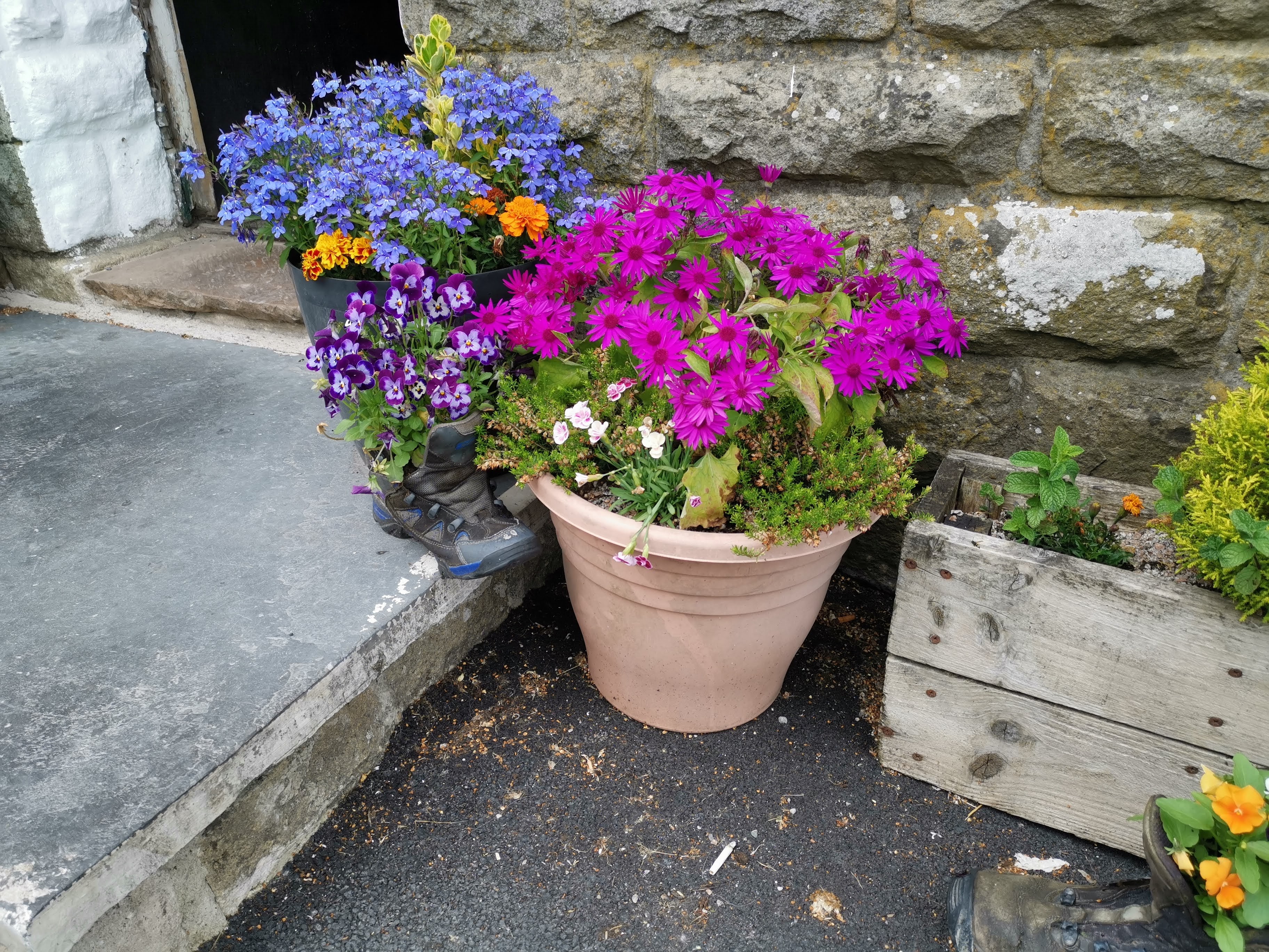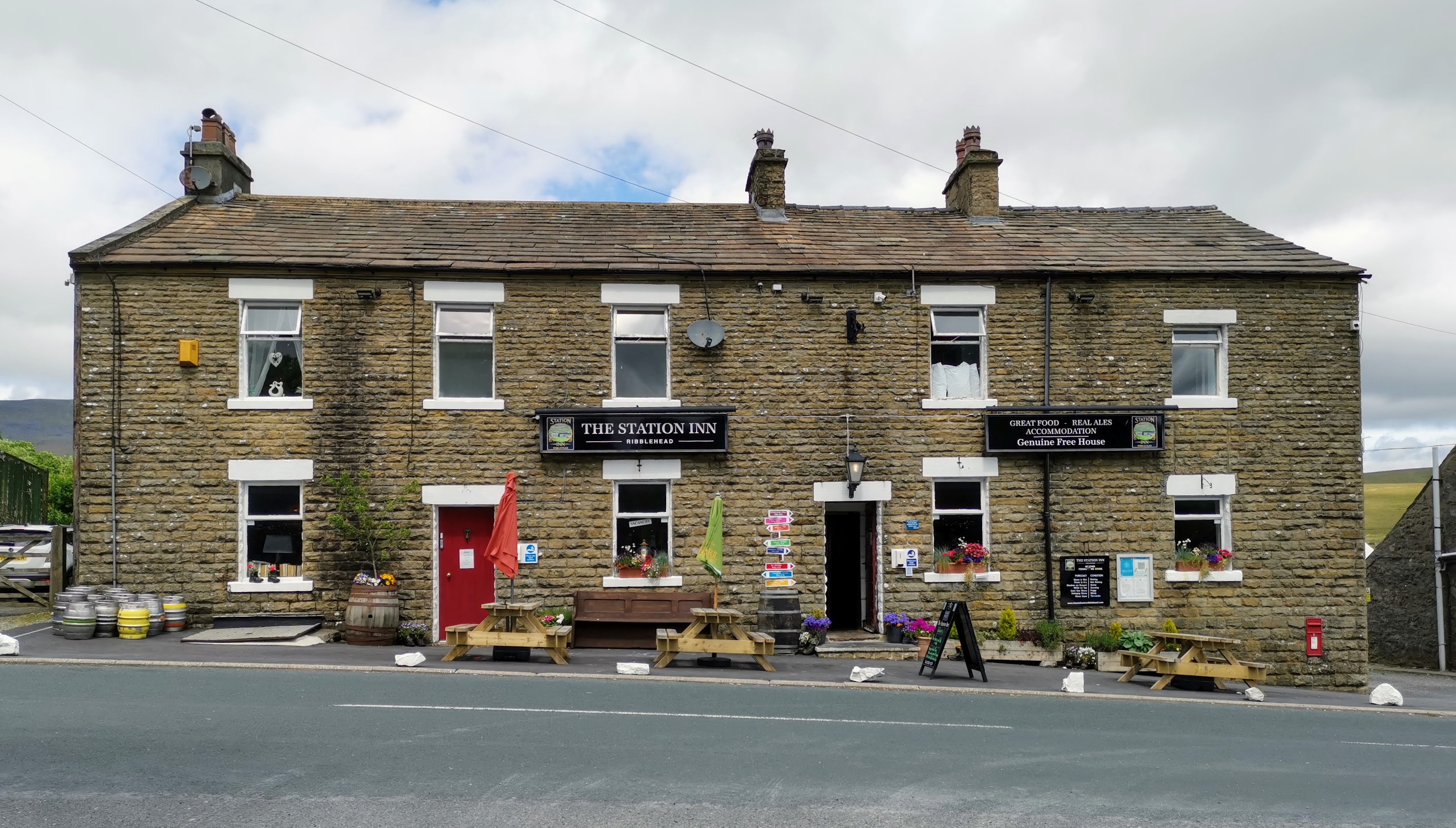 The Station Inn is an interesting building with some unusual planters outside.