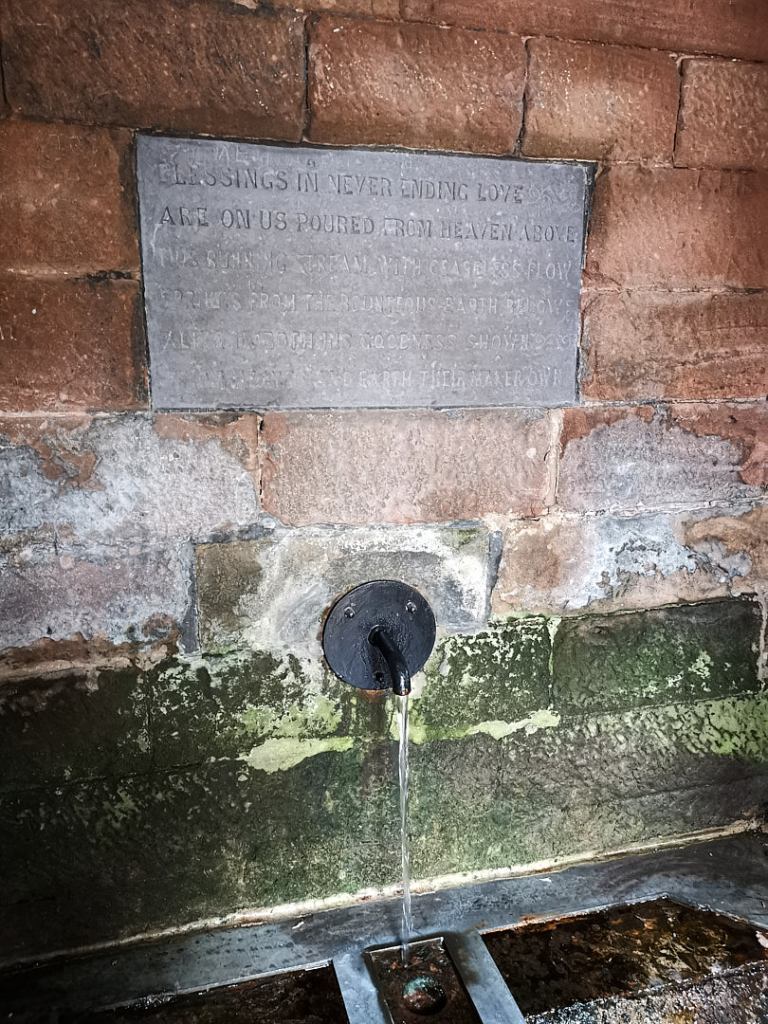 Inside was a spring, with a carved inscription above it: