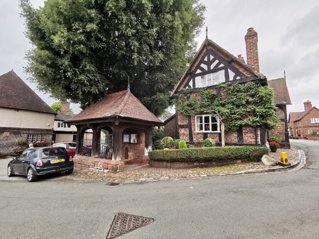 After getting parked (pitched), we went for a walk to the beautiful village of Great Budworth itself. On our way there, we came across this hut at the crossroads.