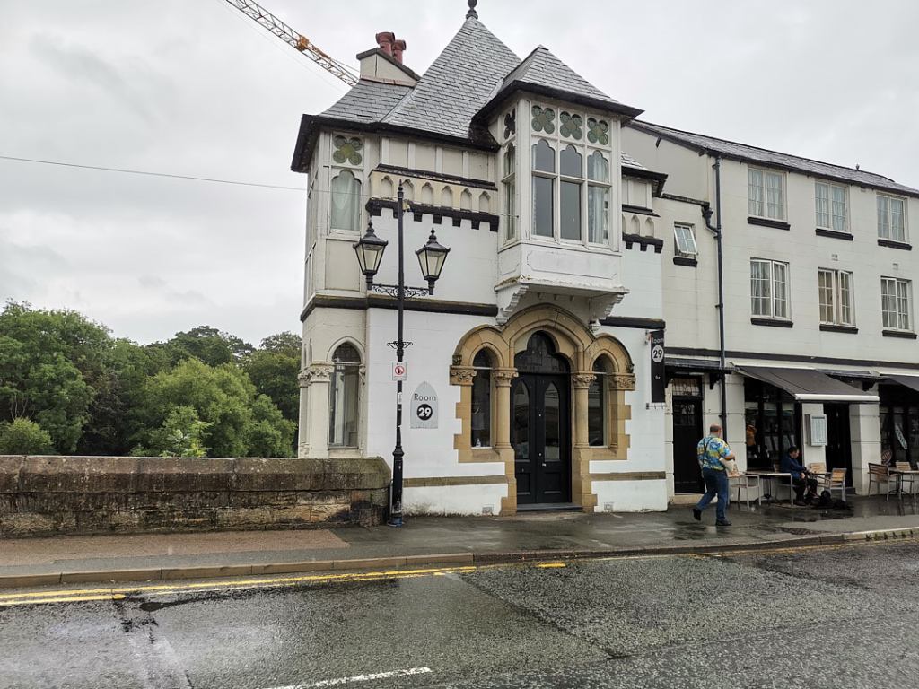 The firm provides outdoor adventure experiences, such as kayaking, and “axe throwing!” (a health and safety nightmare, perhaps). Their car park is right alongside the River Dee, upstream of the town centre.