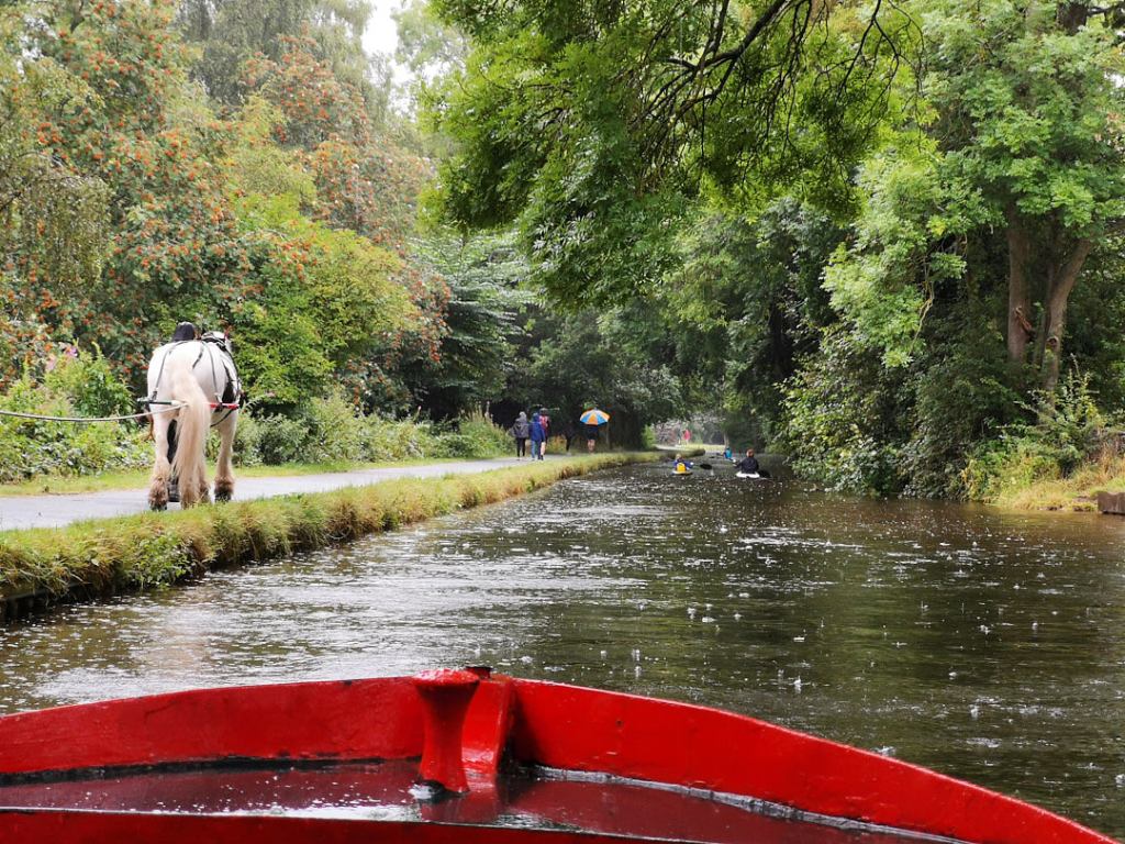 The following day, we took a ride on the horse-drawn canal barge from Llangollen Wharf, towards Horseshoe Falls, where the Llangollen Canal starts. Horseshoe Falls (not really a waterfall, but a weir), provides the mechanism by which water for the canal is diverted from the River Dee. A surprisingly fast current moves along the canal which after many miles, feeds water into the Shropshire Union Canal.