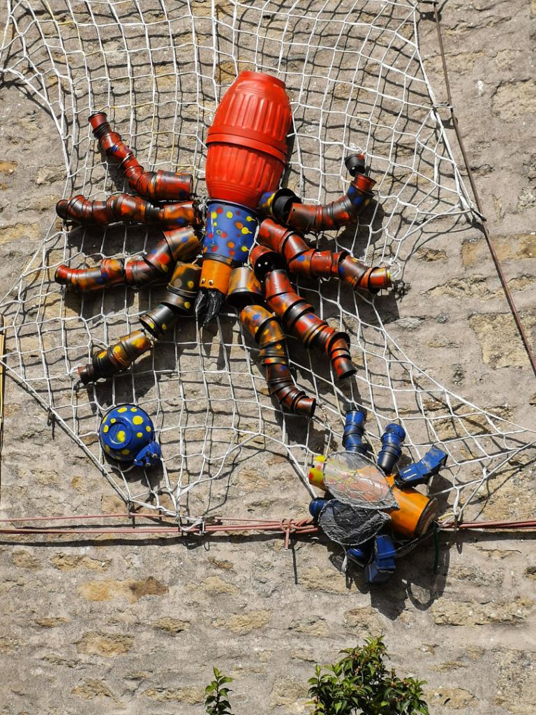 After setting up and a cup of tea, we went for a walk upstream along the river, but on the far side from where we are staying, so we needed firstly head south to cross at the road bridge just as you enter Settle. When we were last here, I blogged about the Settle flowerpot festival which finishes at the end of the month. On this brief visit we found some further interesting examples.