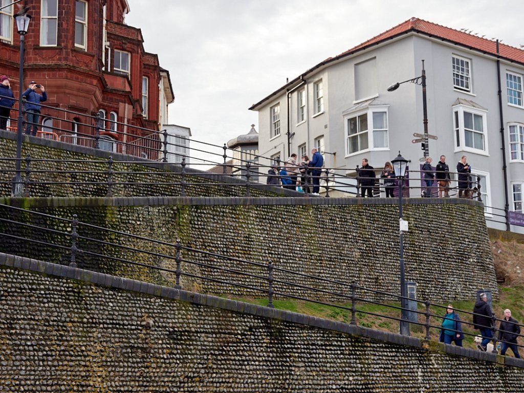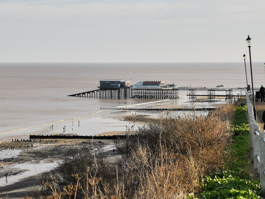 We had found out in advance that there was only one possible place to park in the town as all other car parks have height barriers. We therefore made our way to the northern cliff-top car park where Homer could enjoy the sea view in our absence. Famous for Cromer crabs, the town has a pier and many Victorian buildings.
