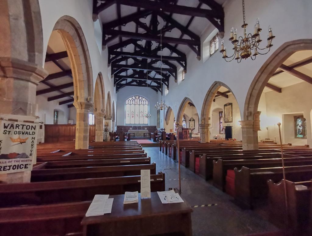 The parish church of Saint Oswald’s apparently flies the star spangled banner from the tower every 4th July. It also has Sir Winston Churhill’s family tree framed on the wall.