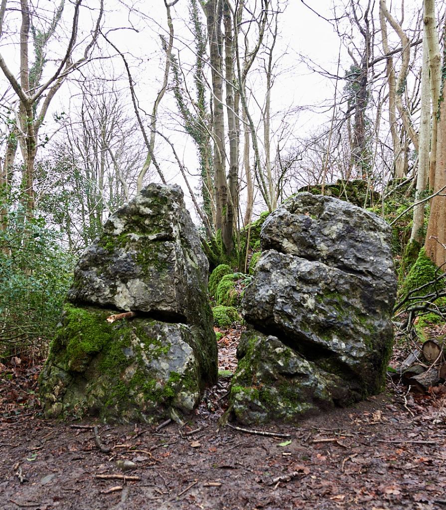 There are several erratic boulders on the crag:
