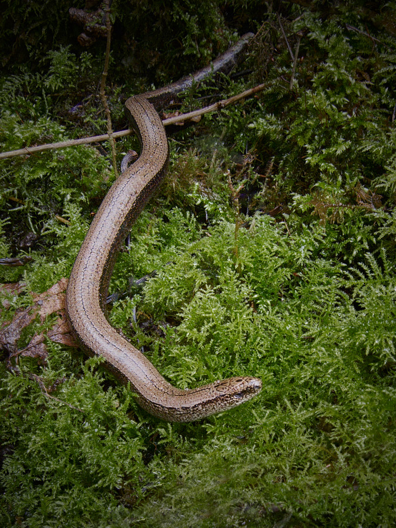 As might be expected in an area with several nature reserves, there was a variety of bird life to be seen including a nuthatch which was very close. On the way to the crag, we also came across a slow worm by the path. I had never seen one before, it is actually a legless reptile, not a worm.