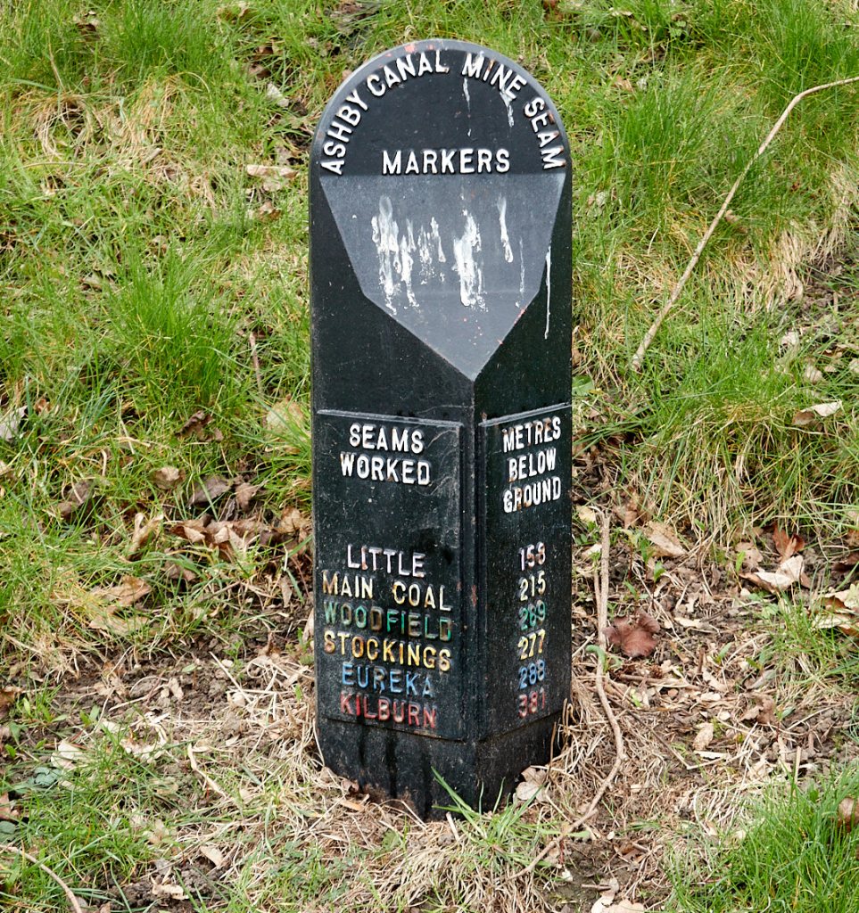 We followed the canal south and along the way found more evidence of the industrial heritage of the area. Here a seam marker alongside the canal, names six coal seams and their depths under that point. At one point, coal mines in this area were the most productive in the country and Donisthorpe Colliery was named as Britain’s most productive pit in 1951. It closed in 1990 after 133 years.