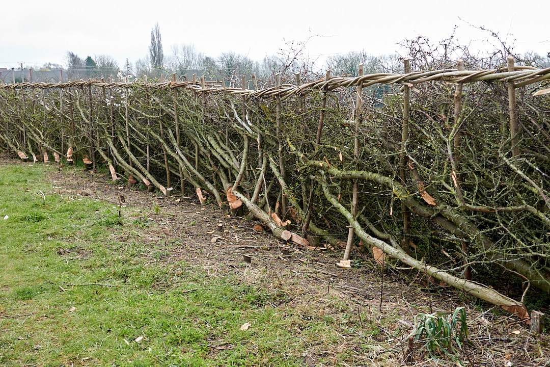Alongside the lock, there is an example of impressive recent hedge-laying. Each area of the country has its own tradition as to how this is done: