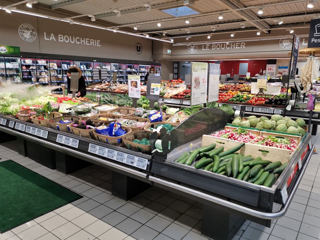 Before long, we stopped at a supermarket for essentials. On Sundays, French supermarkets mostly only open in the morning, many do not open at all, so an early visit was planned. Here again, there are many differences between French and British supermarkets: