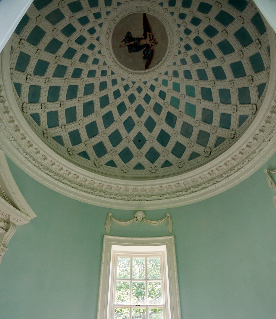 At either end of the terrace is a “temple”. We walked along a beautiful woodland path to the Ionic temple which has an interesting ceiling, but which unfortunately, has to be viewed through the windows.