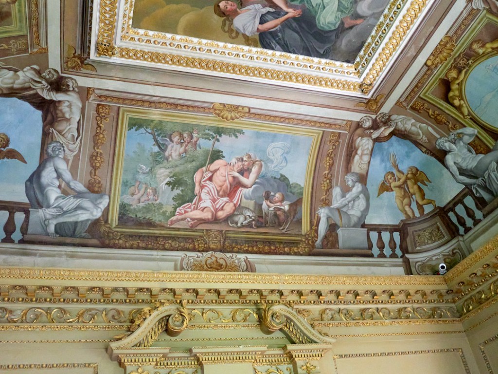 We then walked along the terrace, taking in views across the landscape and Rievaulx Abbey to the Tuscan temple which has an amazing fresco ceiling in what was intended as a dining room, which when originally constructed, housed a kitchen beneath.