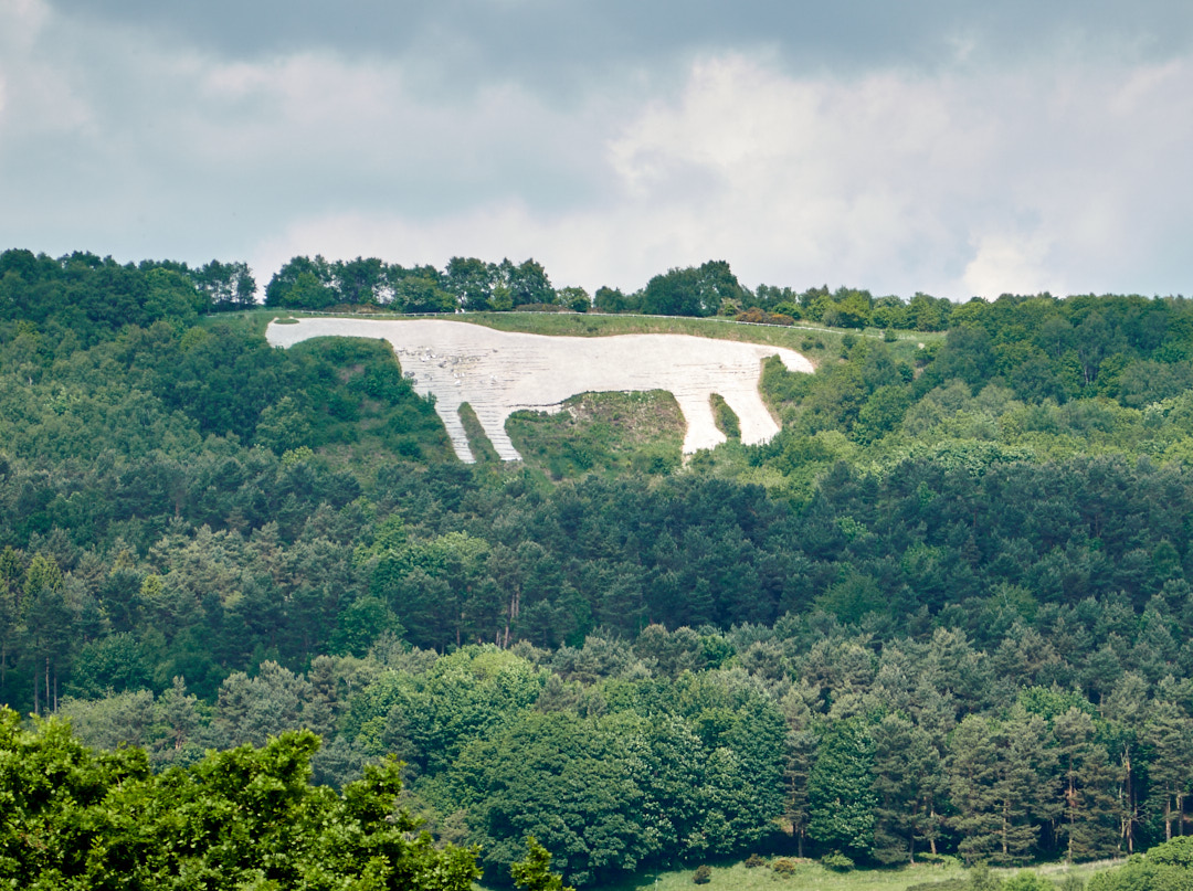 We walked down to the top of the white horse. A beautiful view, but we could not make out its form. In the picture below, the grassy bit in the middle of the white area, is its eye: