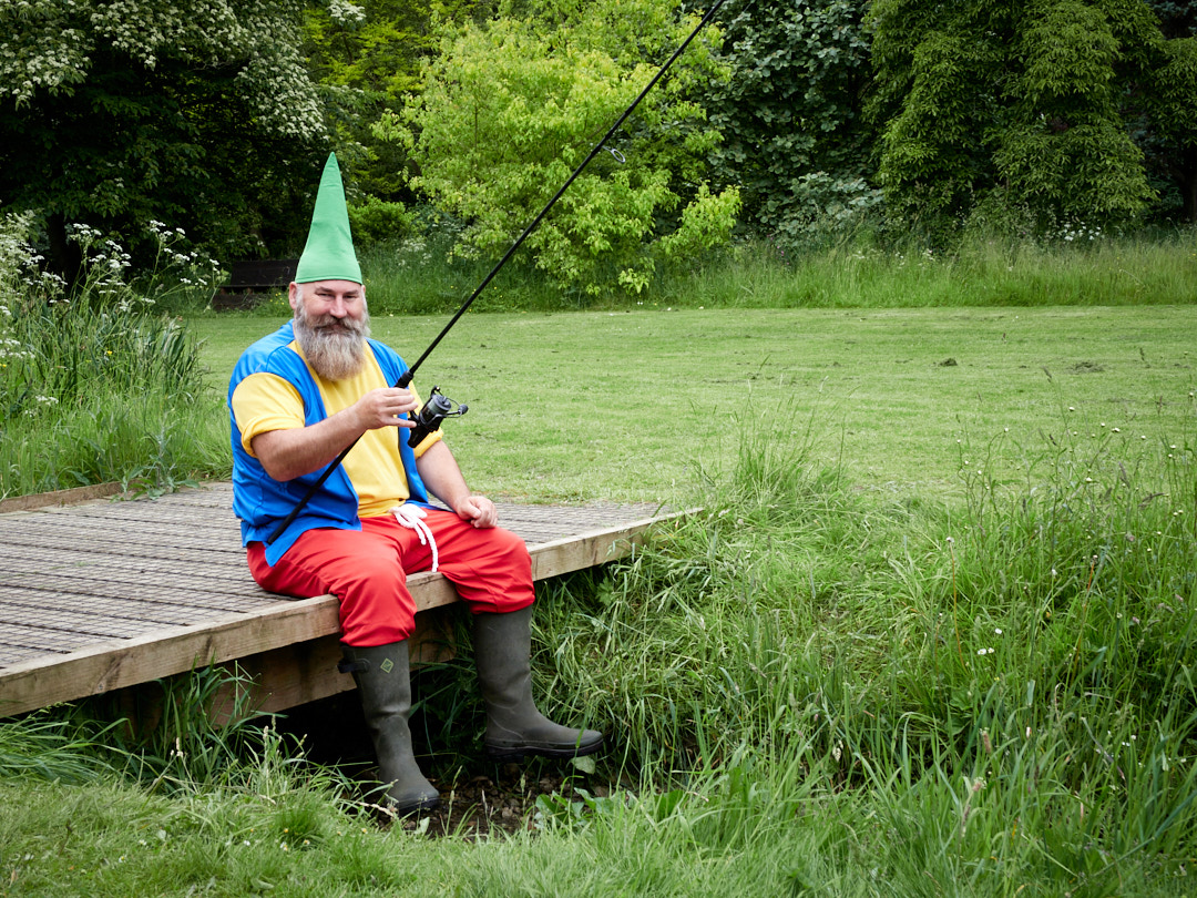 The gnomes clearly come in various sizes, because these are never going to fit him.