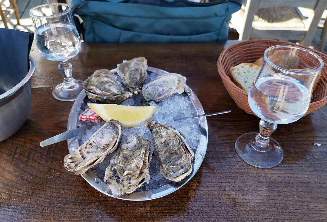 There is a saying that: “If you go to the barbers often enough, sooner or later you will come out having had a haircut”. We had been debating the pros and cons of trying some oysters, all day. Neither of us really fancied the idea, but we talked ourselves into a corner and entered one of the specialist restaurants, who also produce them.
