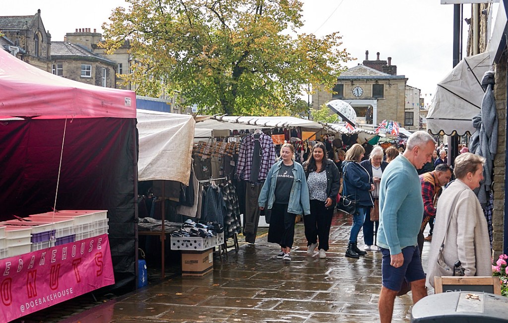 It was market day with stalls on both sides of the High Street.