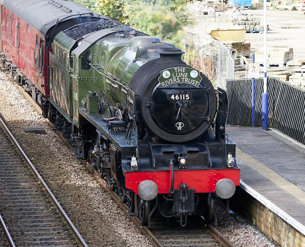 The Scots Guardsman is a restored steam engine which was originally built in 1927 for the London, Midland and Scottish Railway Company and later operated by British Rail. Unfortunately, not much steam was in evidence as the line runs slightly downhill at this point.
