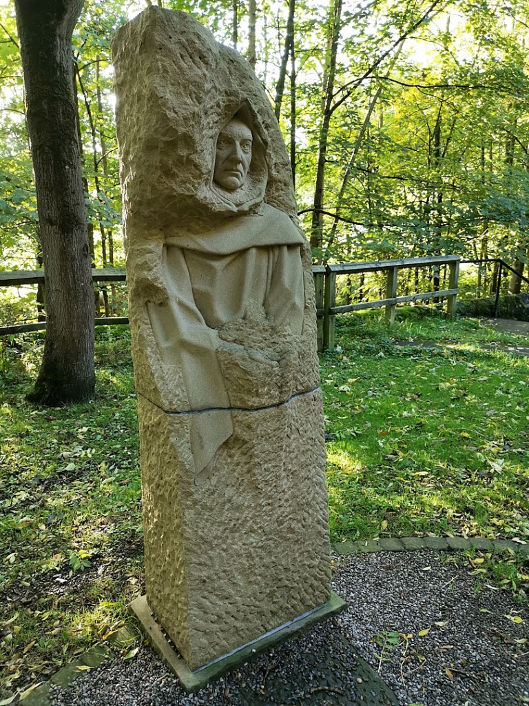 A short walk from the town centre, downstream alongside the River Nidd, is the “Pillars Past” sculpture. Created by Joseph Hayton, the sculpture comprises three figures, representing the lead mining, agricultural and monastic past that has shaped the landscape in and around Pateley Bridge.