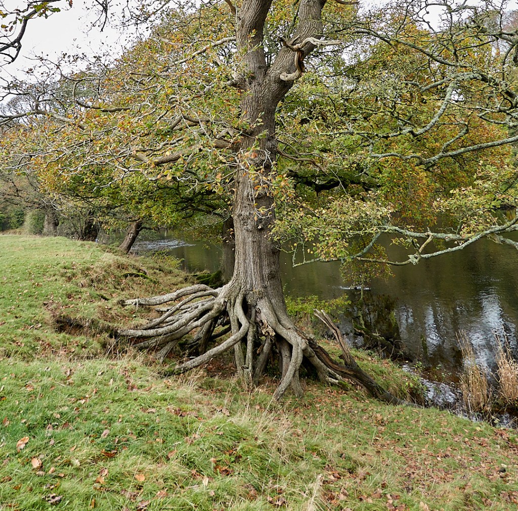 We left the main path to follow the river bank for a while, seeing quite a lot of wildlife, including Cormorants, Great Crested Grebes, Kingfishers and many ducks and geese. We also saw this tree with its roots washed clean of earth as the bank has been eroded.