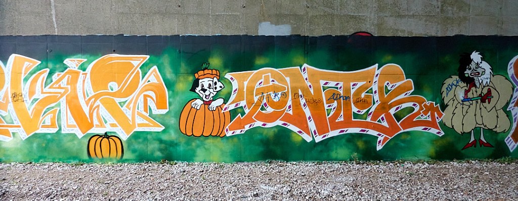 Apparently the underneath of the viaduct is constantly being redecorated: