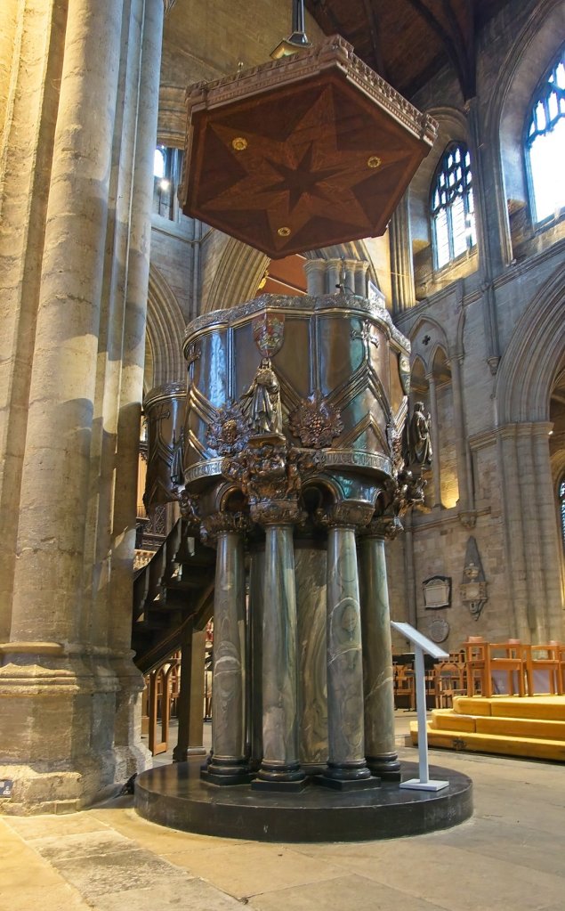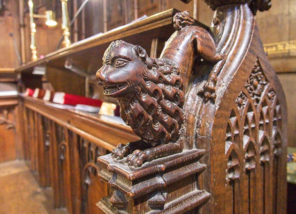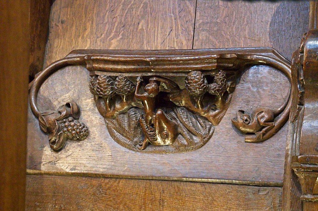 Many of the choir stalls have ornately carved misericords (effectively perches), provided to relieve the suffering of those choristers who were required to stand throughout long services. The one pictured below depicts the bible story of Jonah who was cast to sea and was swallowed by a whale.
