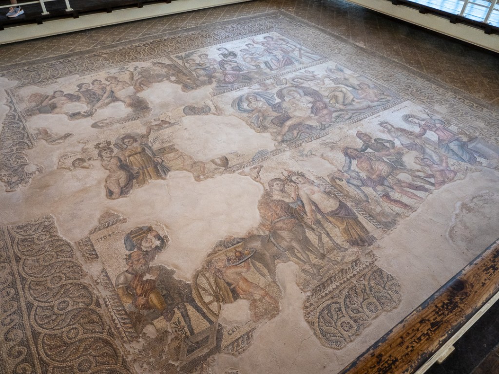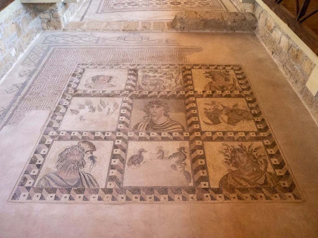 We then visited the large UNESCO world heritage archeological area, which has a number of sites within its boundaries. Again, there were many mosaic floors on display, though many were covered up to protect them.