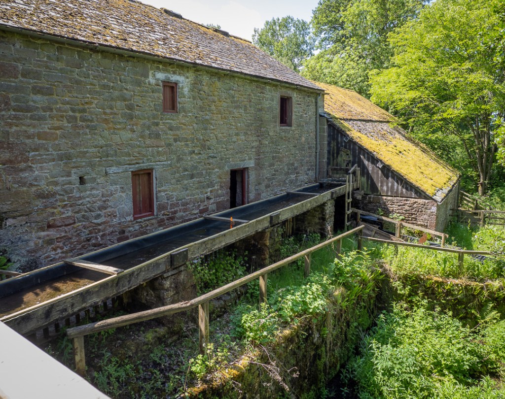 The watermill was working when we visited. Water travels along the mill-race (below) to the wheel, housed in the shed at the far end.