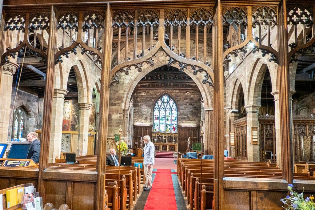 In Georgian times it was extensively altered, with galleries on either side of the nave, a covered-in, plain ceiling and a three-storey pulpit. Now restored to its former glory.