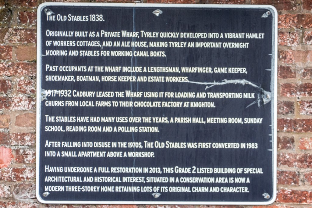 Wall plaque on the Tyrley Wharf buildings