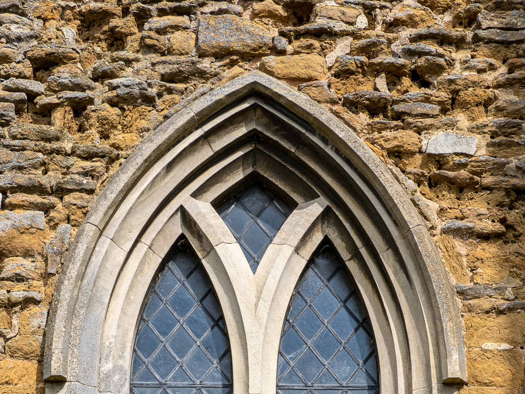 Hose parish church is unusual in that it is built of two, completely different types of stone. The red, sandstone, is soft and has weathered severely in places, whilst the harder light-grey limestone remains quite sharp: