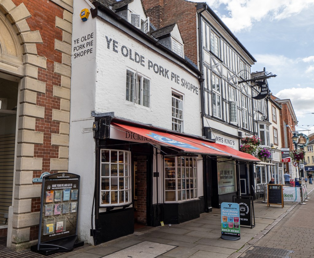 As mentioned above, Melton Mowbray is famous for its pork pies, with two vendors next to each other, “Ye Olde Pork Pie Shoppe” and “Mrs King’s Melton Mowbray Pork Pies, (since 1853)”. I had no idea that Mrs King was that old. Melton Mowbray pork pies have been granted Protected Geographical Indication status since 2008. They are made using a specific hand-raised method.