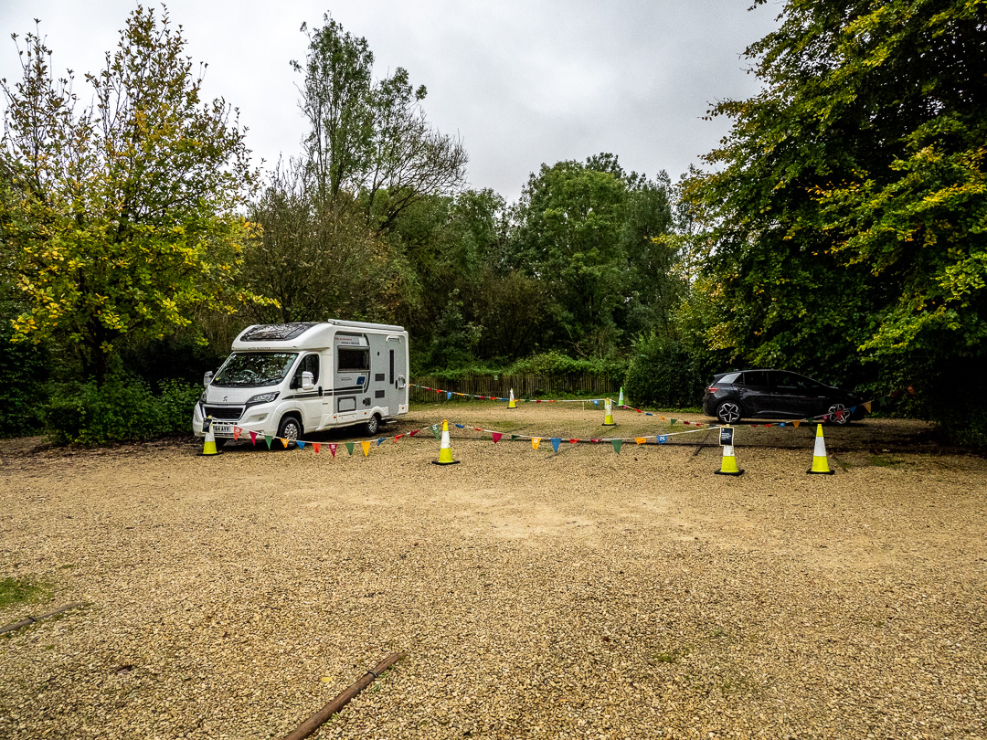 After our reasonably uneventful journey south yesterday, Storm Babet brought heavy rain overnight and throughout the morning leaving some flooding at the site. Nowhere near as bad as elsewhere in the country but other members had to move pitch very early in the morning.