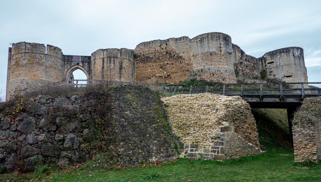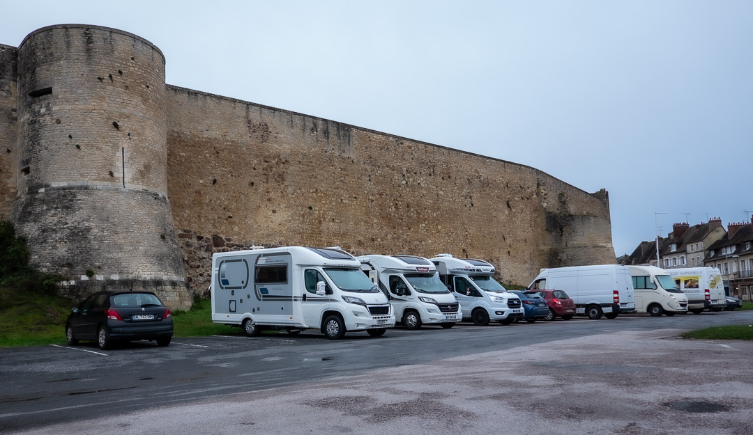 Falaise is famous for its huge castle, built by Guillaume le Conquérant (“William the Conqueror”, also known as “William the Bastard”). Parts of the Chateau are over 1,000 years old. We had planned to park up for the night under the ramparts, which is a recognised motorhome overnight park.
