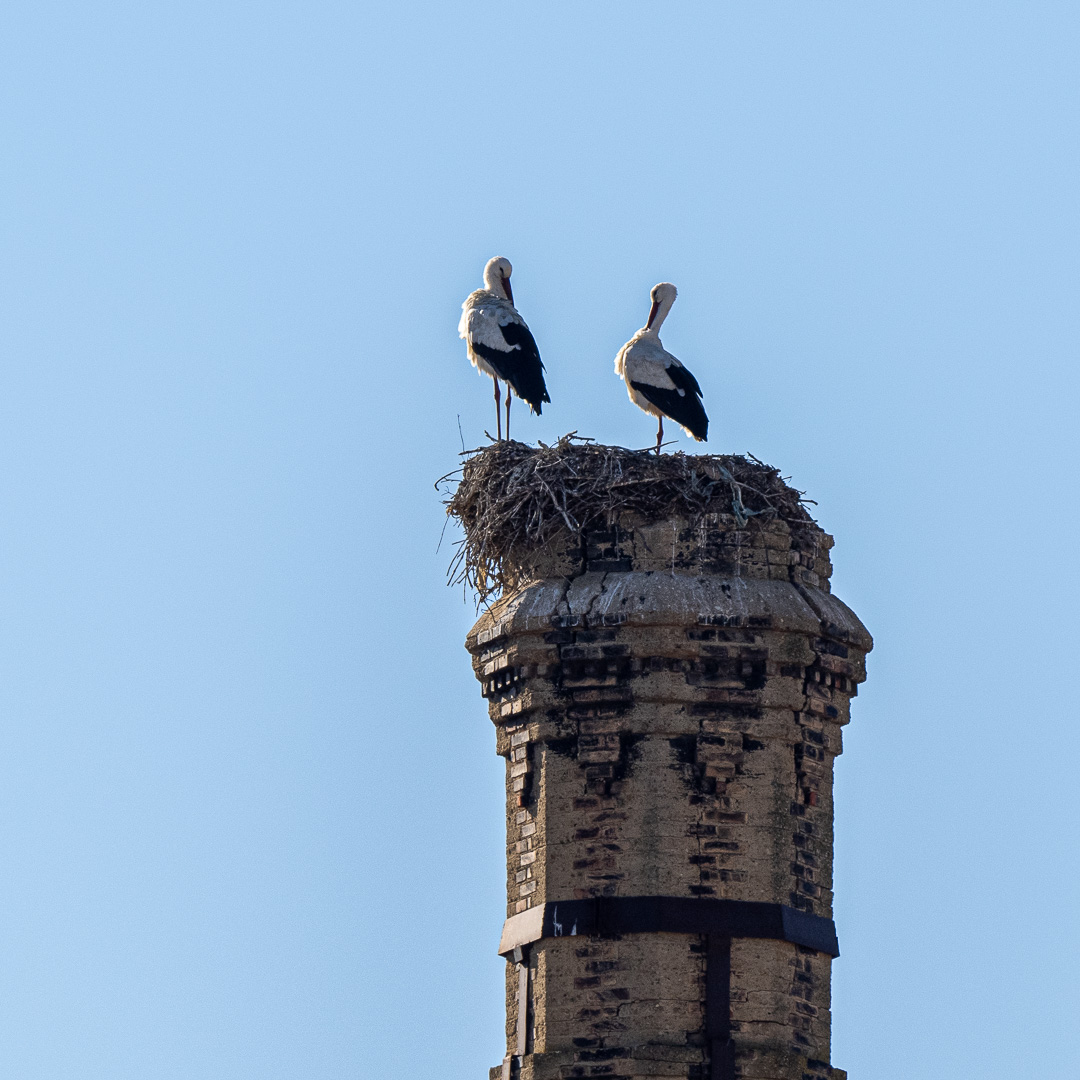 Also of interest were a couple of tall chimneys which provided nesting spots for cranes. I assume they are pairing up ready for breeding.