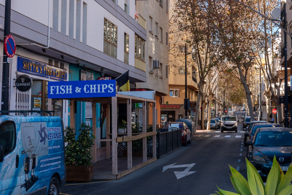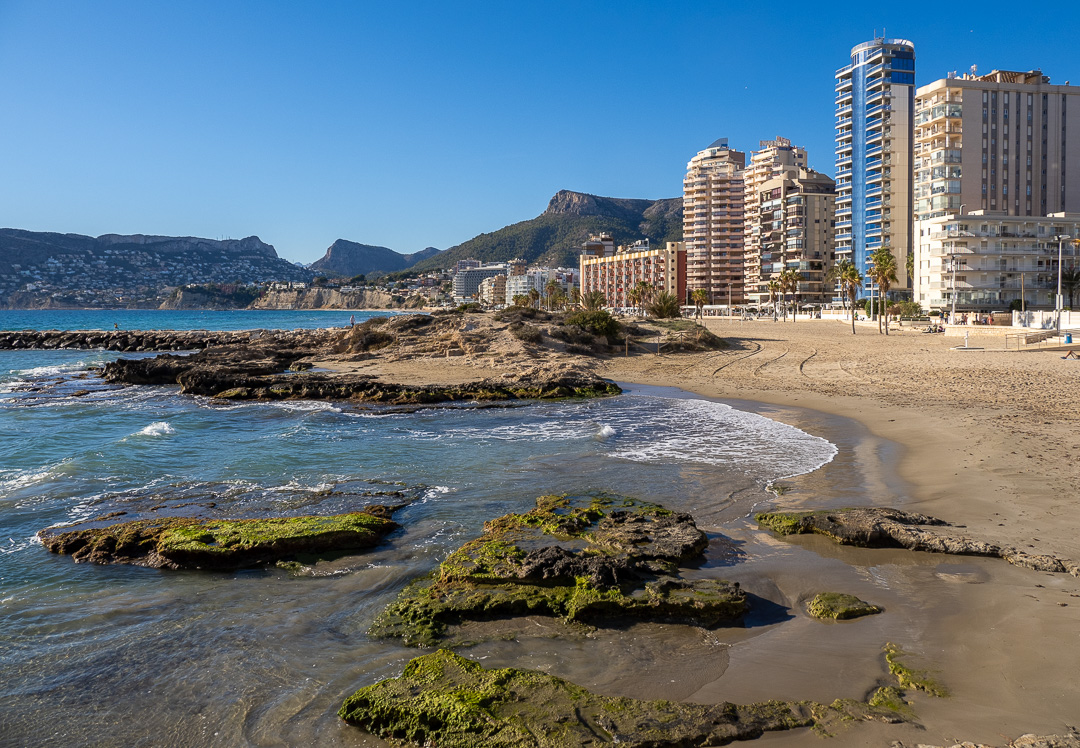 The town of Calpe is a busy holiday destination. As a result, tourists are catered for in many ways, with a little tourist road-train, some souvenir/gift shops and many eateries. There is also a fair amount of high-rise development going on, mostly behind the sea front buildings.