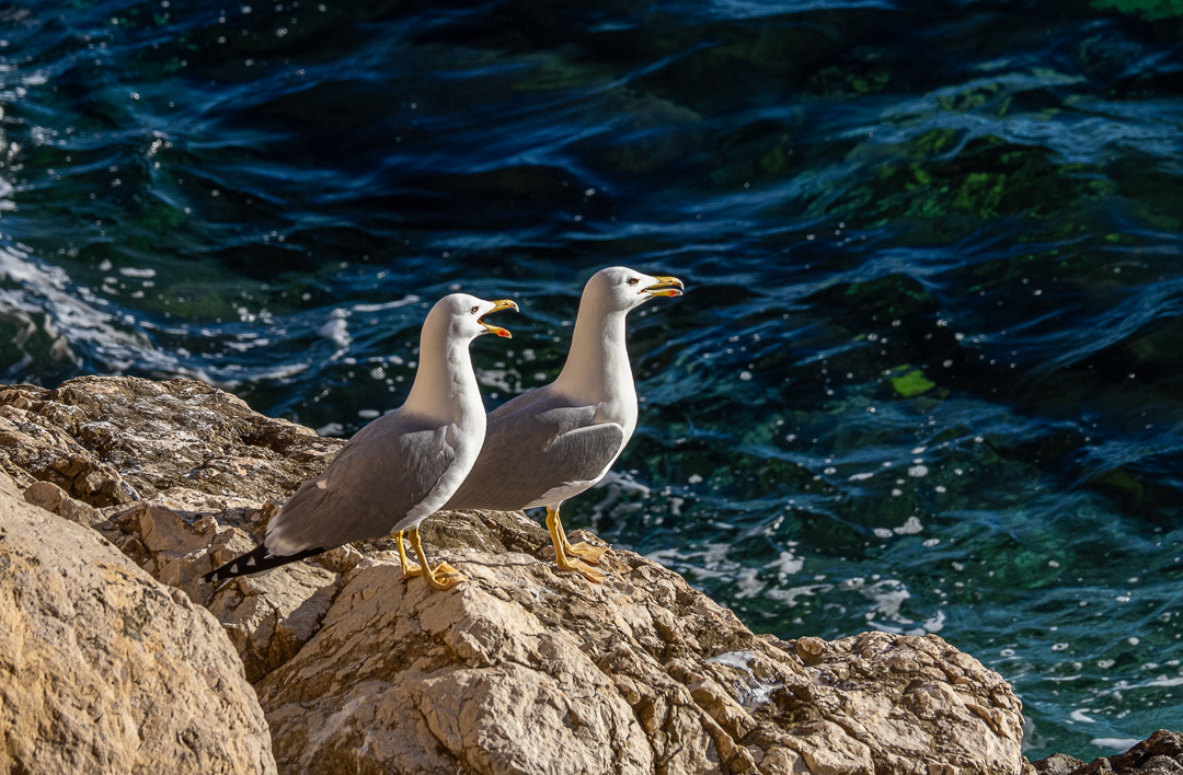 We saw one vessel heading into port followed by a flock of gulls.