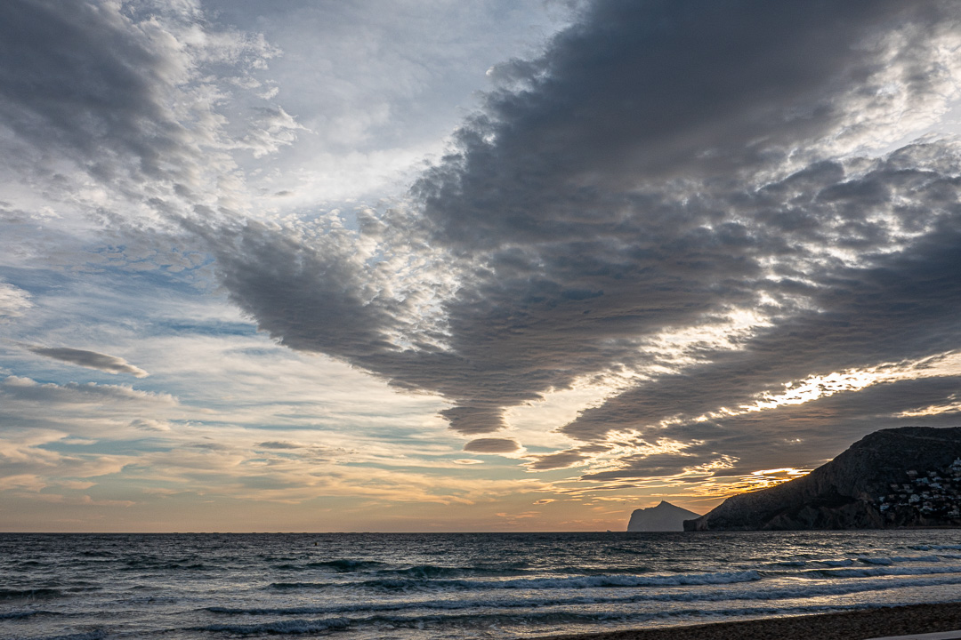 On our last evening in Calpe, we walked along the promenade to enjoy a sangria at one of the bars and watch the sun going down. It was windy and there were some quite good waves; we were entertained by a kite surfer fighting with his kite.