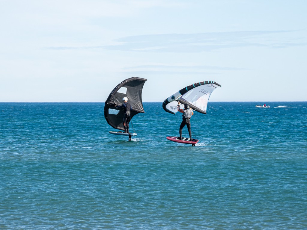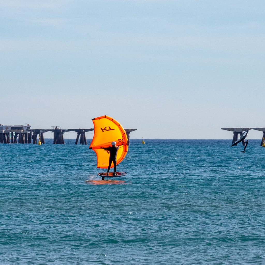 Further on towards the harbour, there were several aqua-planing surf/kite boarders, apparently “flying” skilfully up and down in the surf. Apparently this is called “wingfoiling” (every day is a school day).