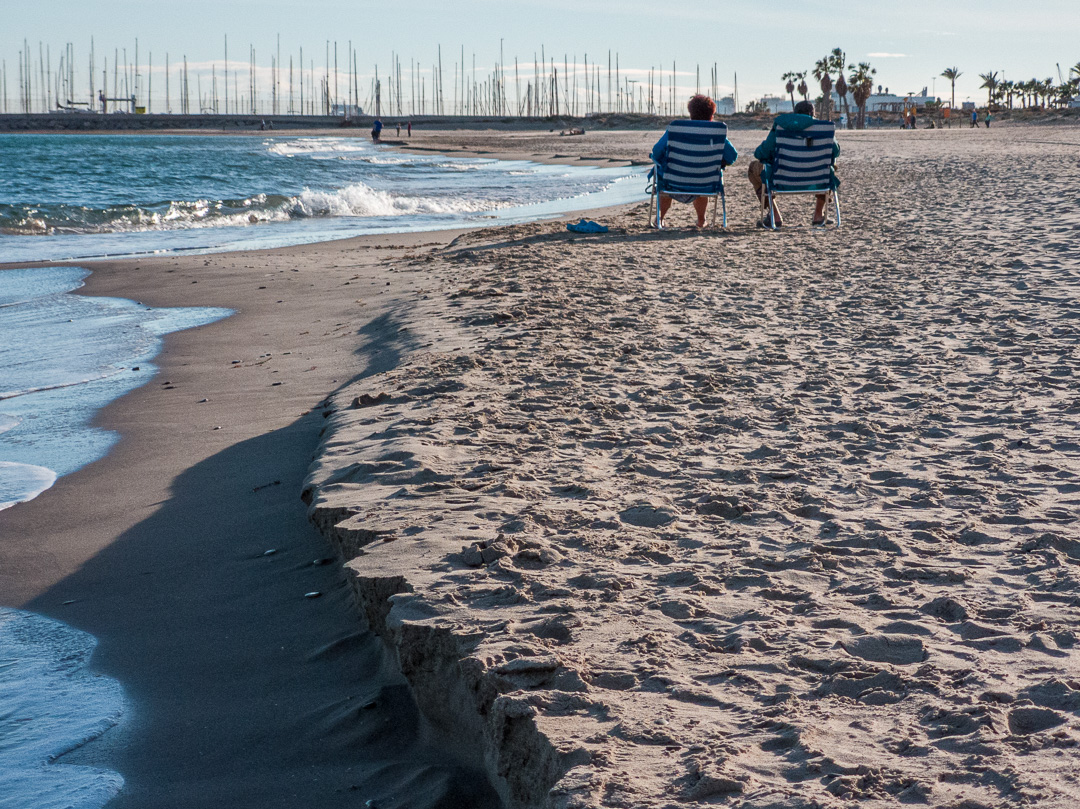 Although the town itself, would be quite attractive for a wander around, our park-up for the night is some distance away, at Canet d’en Berenguer, so we chose to spend our time here taking a cycle ride up and down the extent of the sea-front. We are about 200 metres from the marina with its sea wall:
