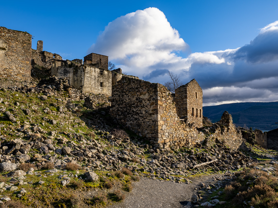I think probable, that the village would be high above any future water level in the reservoir so it is hard to understand the reason for its abandonment. My first thought would have been access, but a new road is being built high behind the village which I assume to be a replacement for the water-side route when it gets submerged.