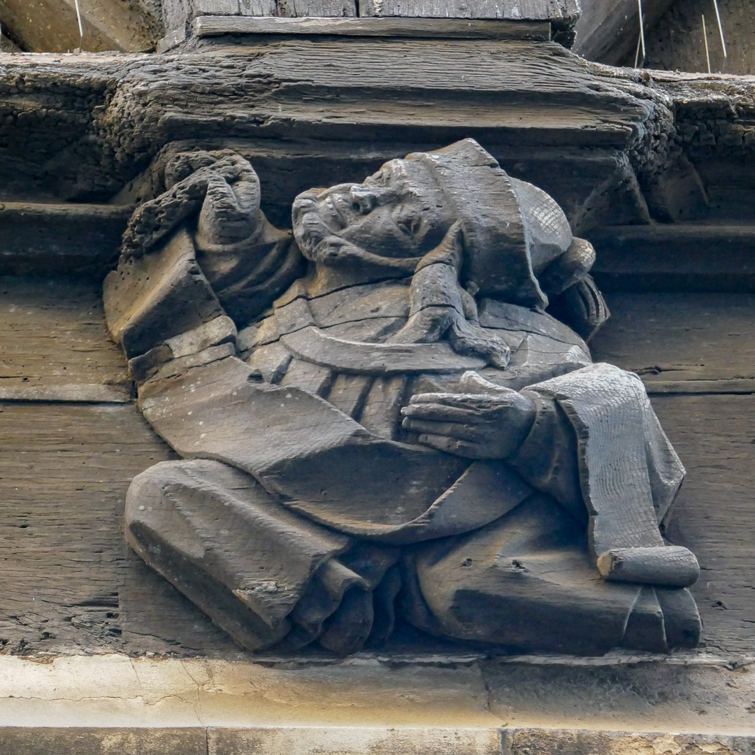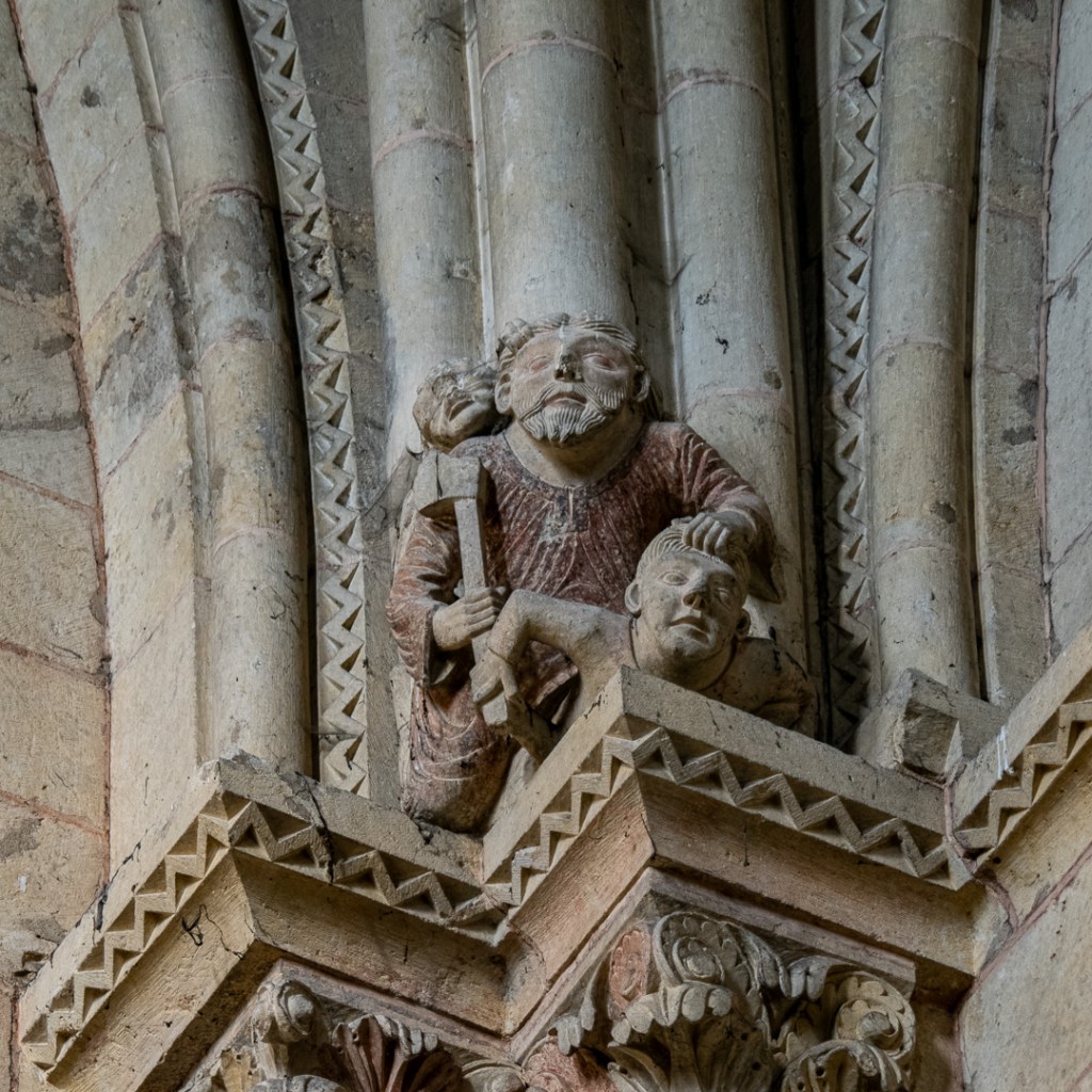…and like on the outside, there are stone grotesque figures and heads, but I do not know their meaning: