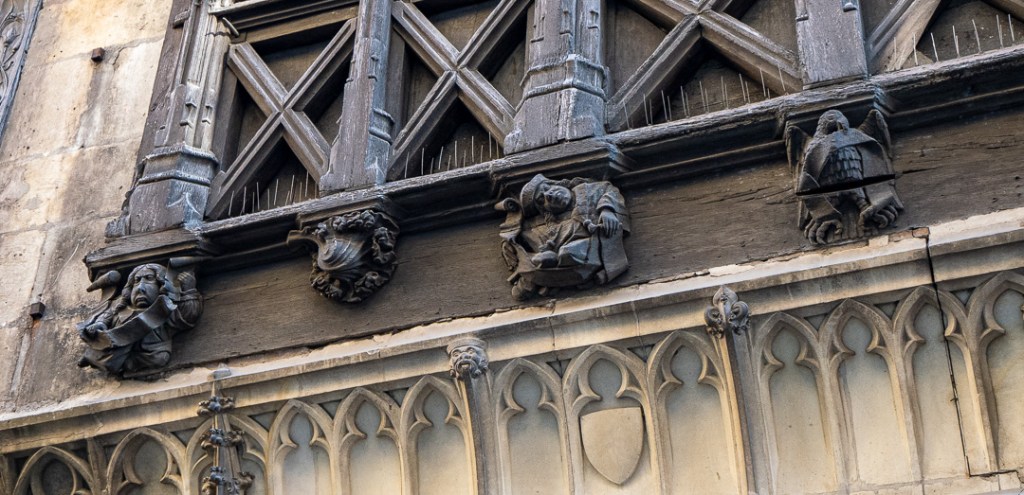 The cathedral is adjacent to the old part of Le Mans (also known as Cité Plantagenêt) and is full of medieval half-timbered buildings, many with strange, highly decorative ornamentation: